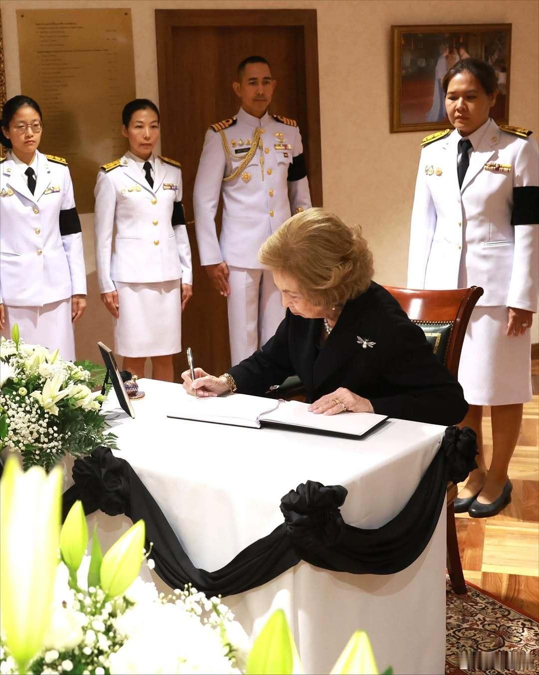 西班牙王室 🇪🇸10月30日,索菲娅王后前往泰国驻西班牙大使馆吊唁诗丽吉太后。世界各国王室[超话]泰国诗丽吉王太后去世新闻