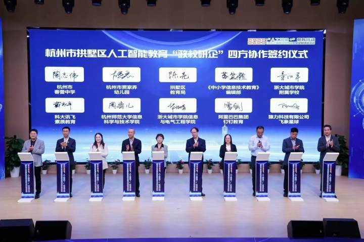 10月29日-31日,“人工智能+”教育行动暨长三角地区教育高质量发展研训活动在杭州成功举办。活动由中国教育技术协会中小学科学教育专委会、北京教育融媒体中心、杭州市拱墅区教育局联合主办,现场举行了“政-校-研-企”四方协作签约仪式,AI教育发展搭建广阔平台,飞象星球等教育科技企业参与签约,共同探索人工智能与科学教育深度融合的实践方向,推动长三角地区教育协同高质量发展。