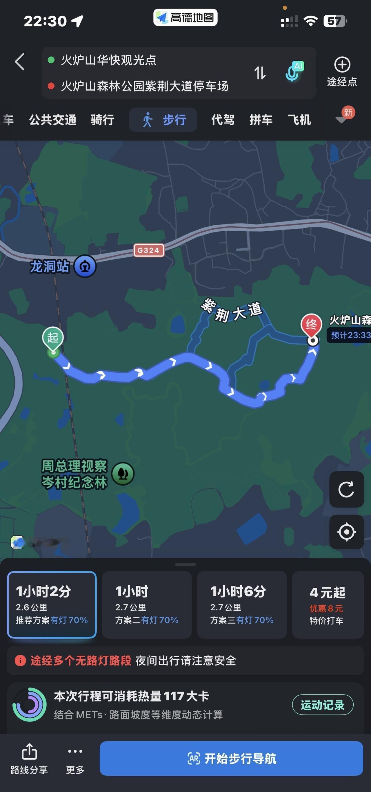 公园主要是步行,不可以骑单车🚲,可以走山路,也有一部分马路可以走,可以开车到景区的停车场🚗,火炉山森林公园紫荆大道停车场,我是从东北门,开车进去的,开进去不到2公里,就是停车场,停车是免费的,也不需要门票。其他门停车场就不知道免不免费了,如果你想去华快观光点,个人觉得,不建议停车在这个停车场,很远,很陡。超过4点就不要进去深山里面了,里面很黑,路不好走,很多台阶,容易崴脚。