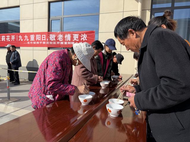 游园会的“甜蜜时刻”,当属“福气缓缓来”“共享长寿甜”“集体生日会”环节。在滕庄社区志愿者的引导下,老人们围坐在一起,一边品尝香甜软糯的重阳蛋糕,一边闲话家常,现场氛围温馨又热闹。