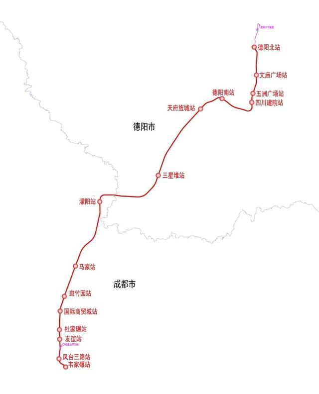 成德线全线共设15座车站,其中10座为地下车站,包括位于成都市的韦家碾站、凤凰山站(凤台三路站)、杜家碾站等,以及德阳市境内的四川建院站、五洲广场站、德阳北站等。