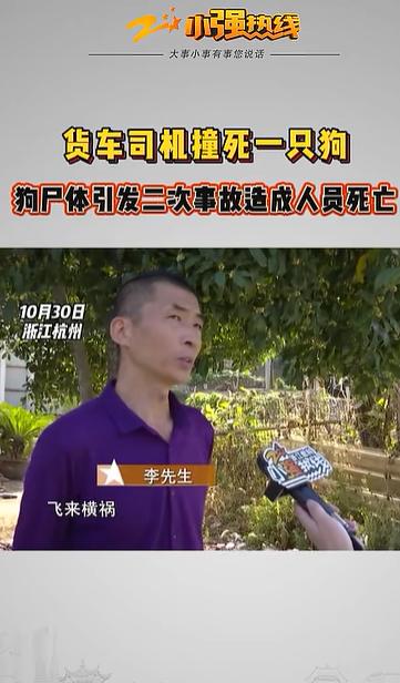 据小强热线浙江教科10月30日报道:河南的李先生是跑货运生意的,前段时间经过杭州桐庐某路段时撞上了一条狗,没想到这只狗的尸体,竟然引发了一起致人死亡的交通事故。