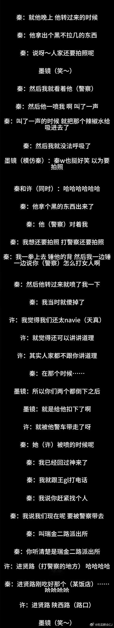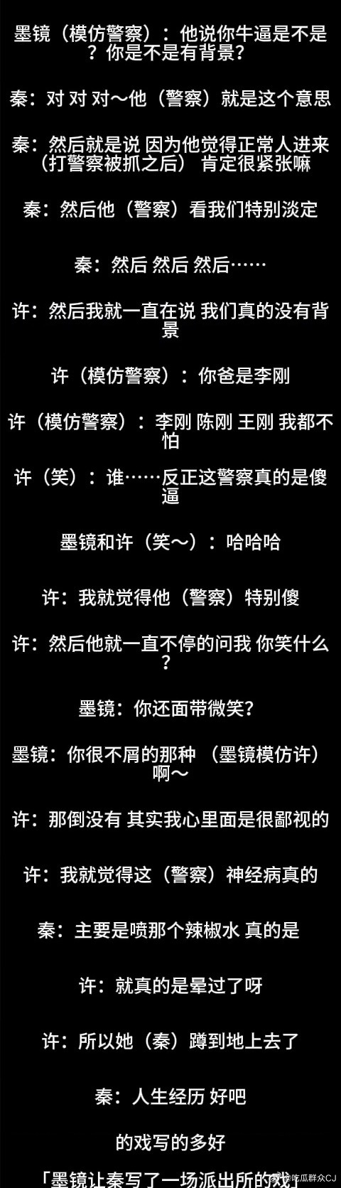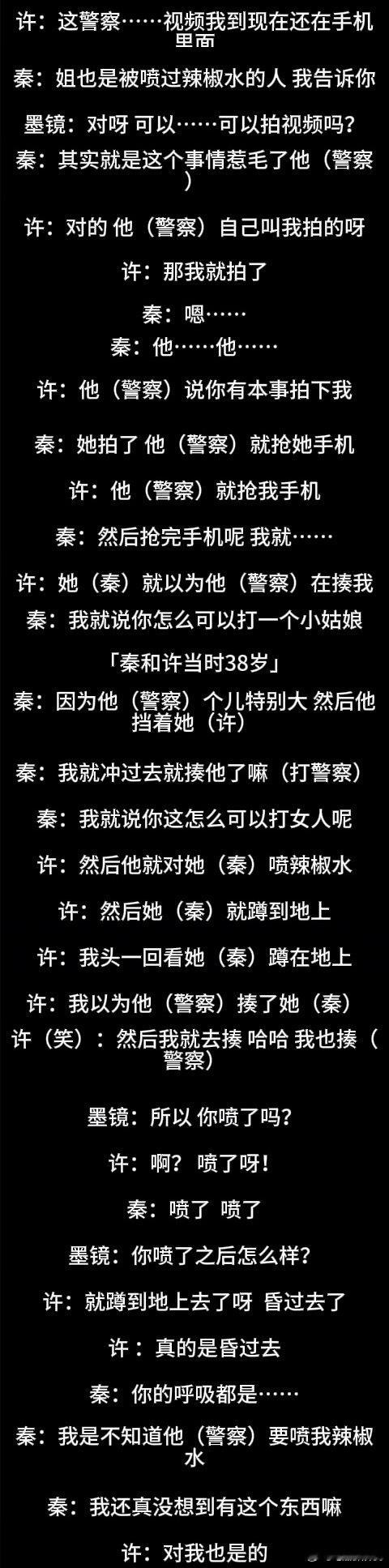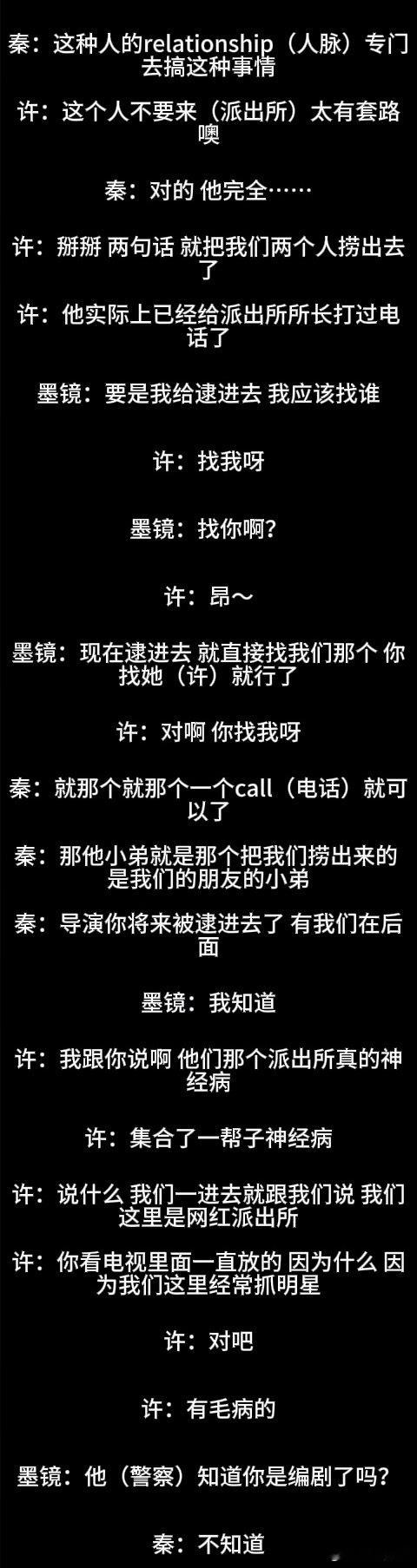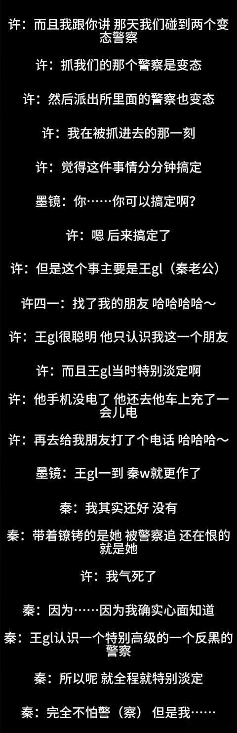 因为这段罗里吧嗦说的是她俩怎么打警察、怎么不配合警察执法、被带进派出所第一反应是找关系捞人,还强调了秦雯老公王光利认识高级警察所以她进去心头完全不慌,捞人应该花了钱而且来保的人“有套路”,得意洋洋人脉就该这时候用……