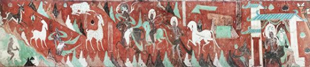这幅壁画在艺术风格上独树一帜,深受中原绘画形式的影响。它既摒弃了印度壁画的环形构图方式,又不同于龟兹壁画里的菱形画面布局,而是开创性地采用了连环画式的长卷式构图,宛如一条历史的长河,将故事娓娓道来。
