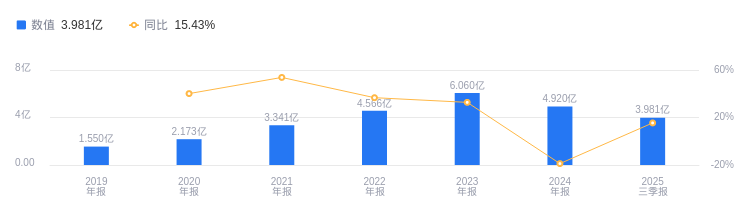 2025年三季度,华曙高科营业收入为3.98亿元,行业排名42/51,远低于行业第一名巨星科技的111.56亿元和第二名宗申动力的95.83亿元,也低于行业平均数13.51亿元和中位数7.39亿元。当期净利润为1455.81万元,行业排名39/51,与行业第一名巨星科技的22.11亿元、第二名宗申动力的7.77亿元差距明显,低于行业平均数1.41亿元和中位数5733.43万元。
