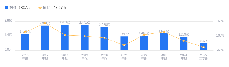 2025年三季度,新经典营业收入为4.75亿元,行业排名15/19,行业第一名皖新传媒达68.51亿元,第二名中原传媒为66.2亿元,行业平均数为21.02亿元,中位数是12.41亿元。当期净利润为6836.84万元,行业排名12/19,行业第一名皖新传媒9.63亿元,第二名中原传媒7.79亿元,行业平均数为1.66亿元,中位数为7942.67万元。