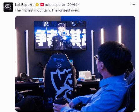 LOL官推分享Tabe看Faker赛后采访照片:最高的山,最长的河