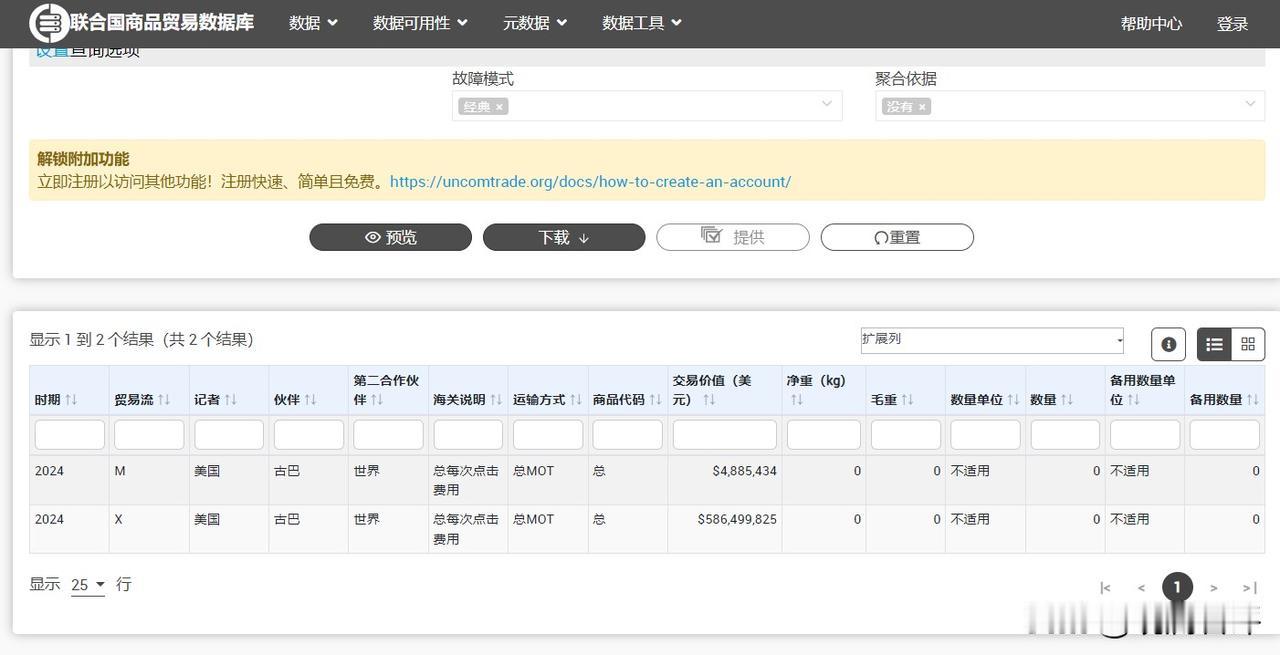 美国与古巴的贸易并没有中断,根据联合国数据,2024年美国向古巴出口了5.8亿美元的物资,主要是食品等人道主义物资。此外,美国每年都向古巴捐赠,2024年捐资了6700万美元。古巴前十大贸易伙伴,半数都是西方国家,美国并没有阻止盟友与古巴做生意。