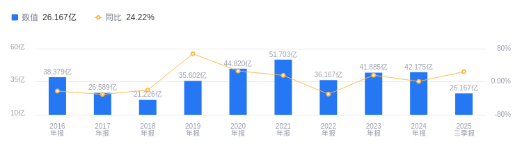 2025年三季度,国海证券营业收入为26.17亿元,行业排名31/45,远低于行业第一名中信证券的558.15亿元和第二名国泰海通的458.92亿元,也低于行业平均数94.29亿元和中位数44.23亿元。净利润为7.67亿元,行业排名35/45,与第一名中信证券的239.16亿元、第二名国泰海通的230.59亿元差距较大,低于行业平均数38.81亿元和中位数17.09亿元。