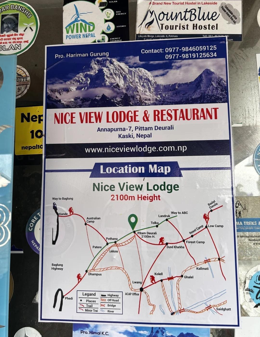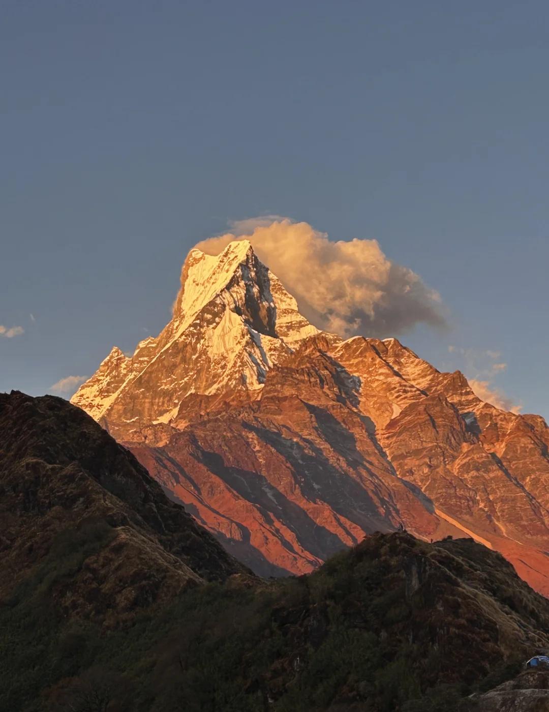 MBC自主徒步攻略(交通行程篇) Day1:Pokhara → Kande → Pittam Deurali 出发:中午从Pokhara(Baglung Bus Park) 坐车,等5-30分钟不等,人满发车, 坐车到Kande(约1小时,车费150尼) 路线:Kande → Australian Camp -Pittam Deurali 住宿:Pittam Deurali (Nice view lodge&restaurant) (单人间 1000 卢比, wifi充电免费,无热水) 海拔:2100m, 天气晴朗时能看到鱼尾峰的尖顶。 小贴士:首日海拔不高。 可以顺路在Australian Camp稍作休息拍照。 Day 2: Pittam Deurali → Forest Camp → Rest Camp → Badal Danda 时长:8h 住宿:Badal Danda (Lucky view guest house:单人间500尼,充电200尼,wifi200尼,提前问清楚,不然附加很多隐形消费) 海拔:3200m 亮点:走出森林后可见到壮丽山脊景色,Badal Danda在云层之上,是绝美观景点之一。 lowcamp以上的营地日落都非常震撼, 建议下午4点前抵达。 Day3:Badal Danda → High Camp 住宿:High Camp(Hotel trekkers paradise&restaurant:拼房700尼,不拼1500尼一个单人间,充电和wifi🉑二选一免费一项,都不稳定,wifi和电常常断,这家的优点就是风景很好) 海拔:约3550m 鱼尾峰和安娜普尔娜南峰就在眼前, 是看日出日落和星空的绝佳位置。 夜晚温差大,风冷,建议穿羽绒服和帽子。 Day 4:High Camp → Mardi Himal Base Camp → Siding 出发:凌晨3点左右出发,记得带头灯 时长:上行约3小时,下山回High Camp约2小时,再下山回Siding约5小时 返回方式:从Siding包车回Pokhara (一车7500尼,拼的人越多越省钱, 当天下冰雹了,就五个人一车下山, 很颠,坐车前尽量只喝水,保持空腹, 约1000-1500/人) MBC 博卡拉 攻略 尼泊尔 徒步