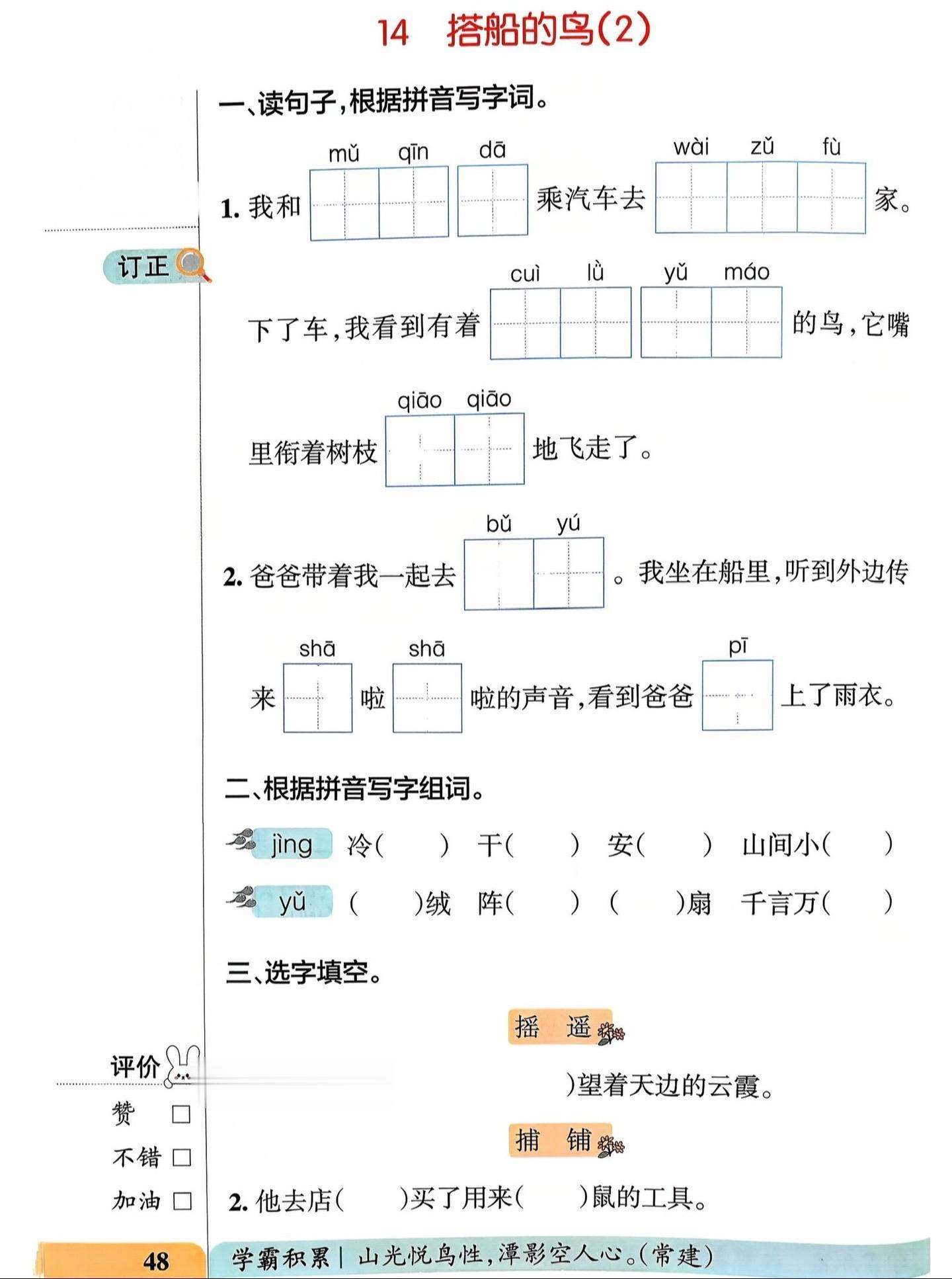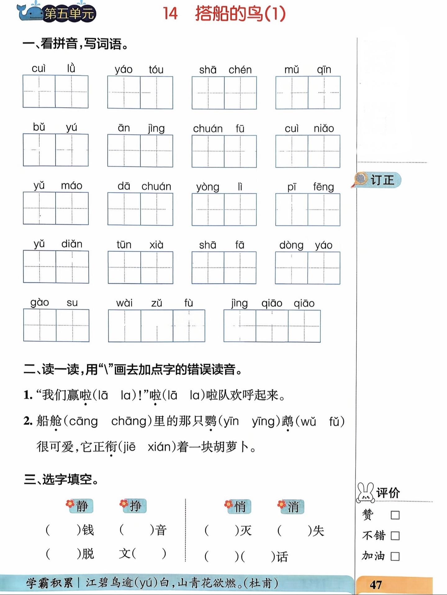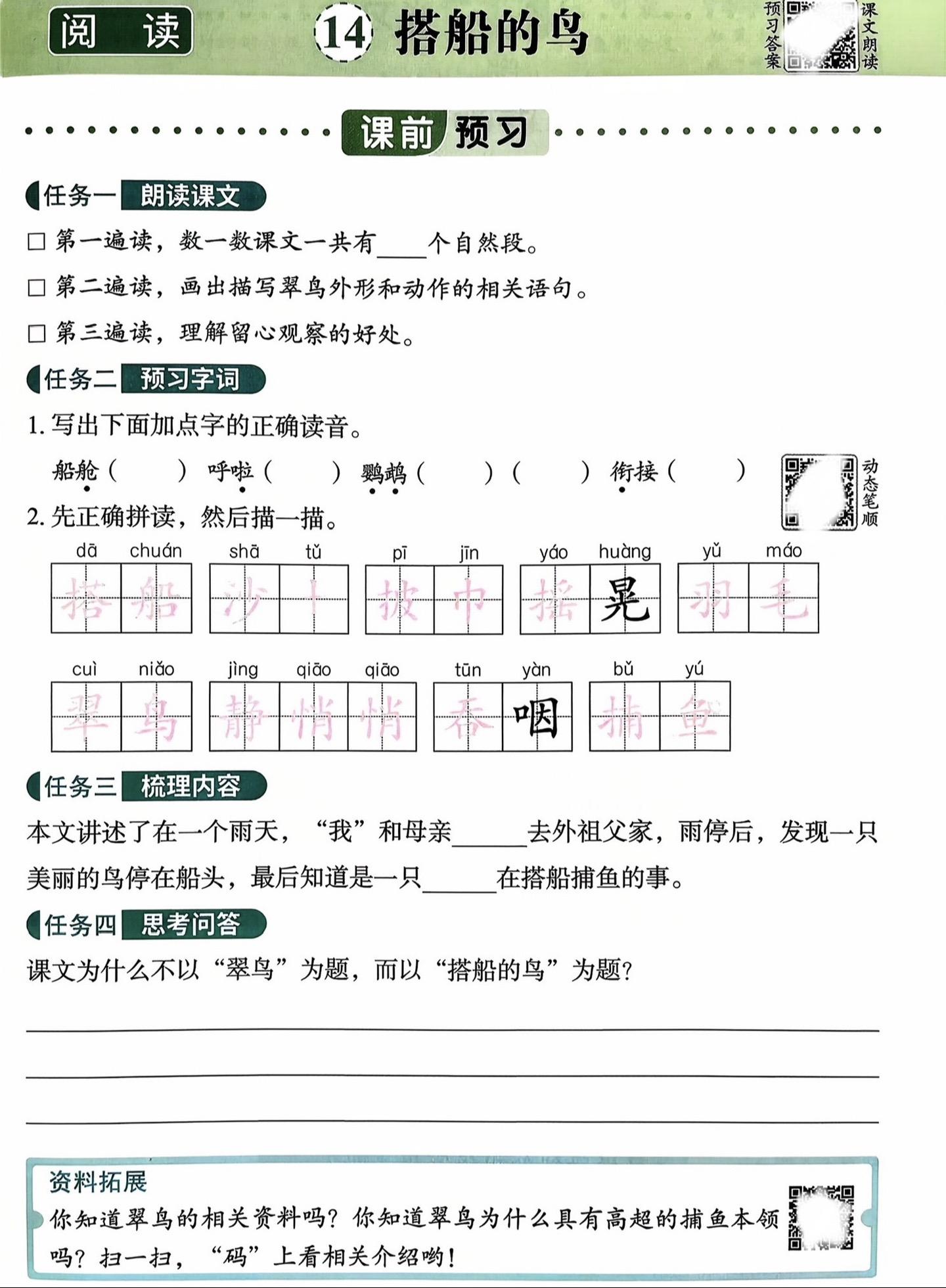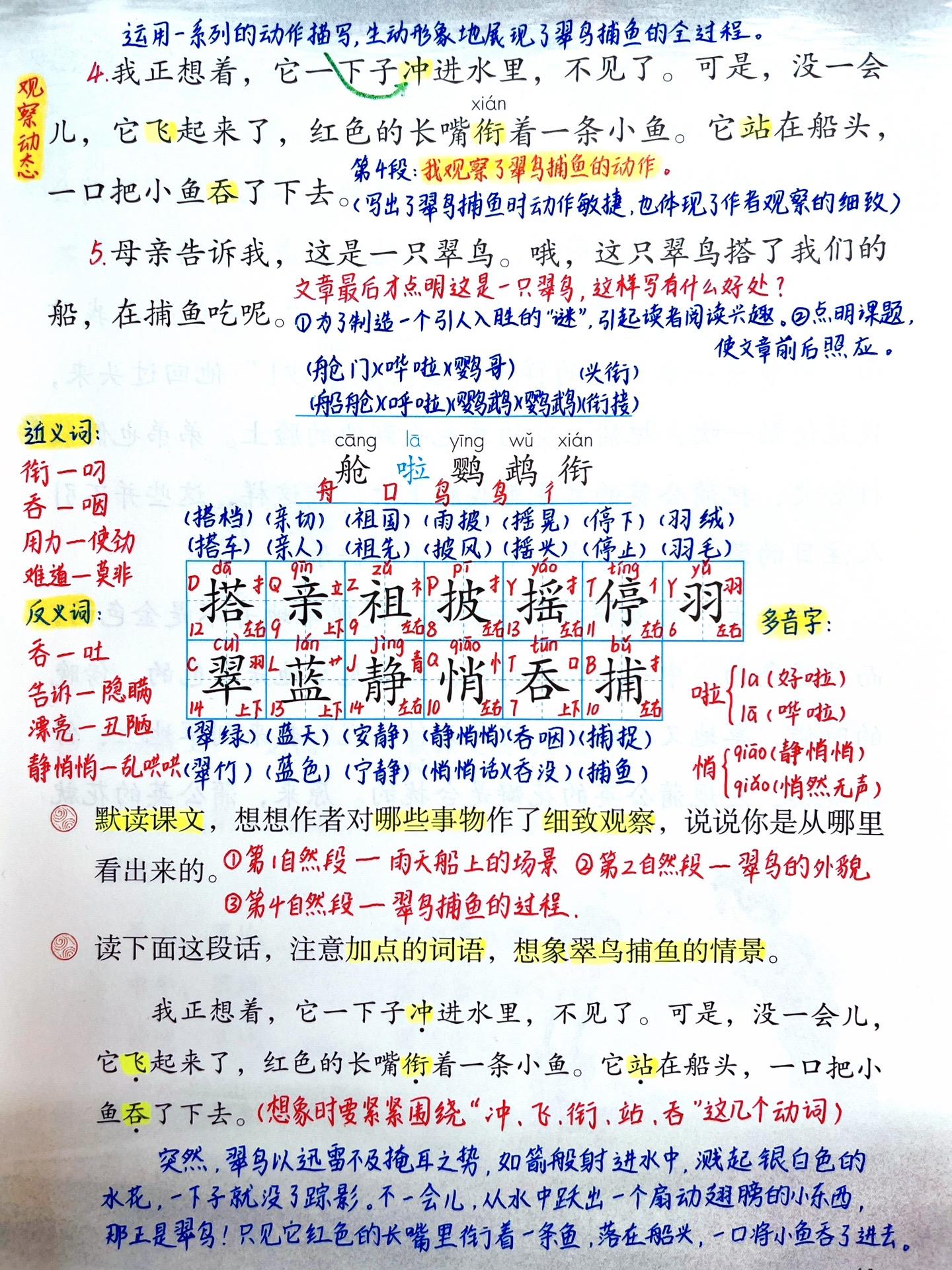 三年级上册语文《搭船的鸟》笔记。 文中的“我“是一个怎样的孩子? 答...