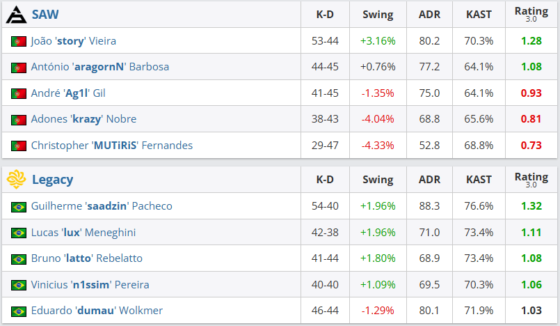 图一Legacy选择Inferno,葡萄牙人开局立足防守,上半场便建立起10-2的巨大领先优势,虽然Legacy象征性地追了几分,但SAW还是以13-7先下一城。