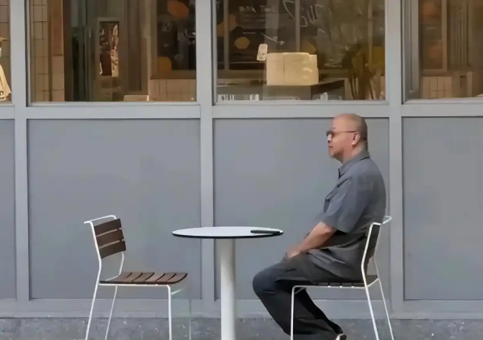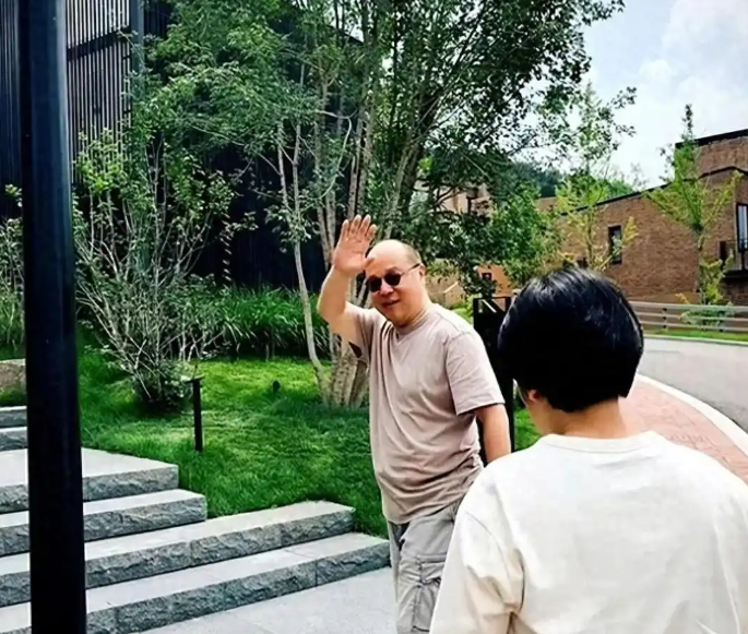 照片中他帅气不再,头发稀疏,发福明显,打扮普通,放到人群中绝对看不出是那个曾经的大明星。