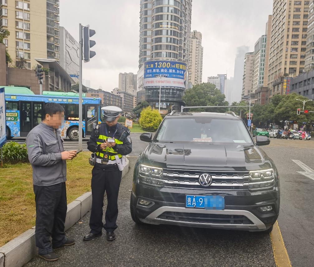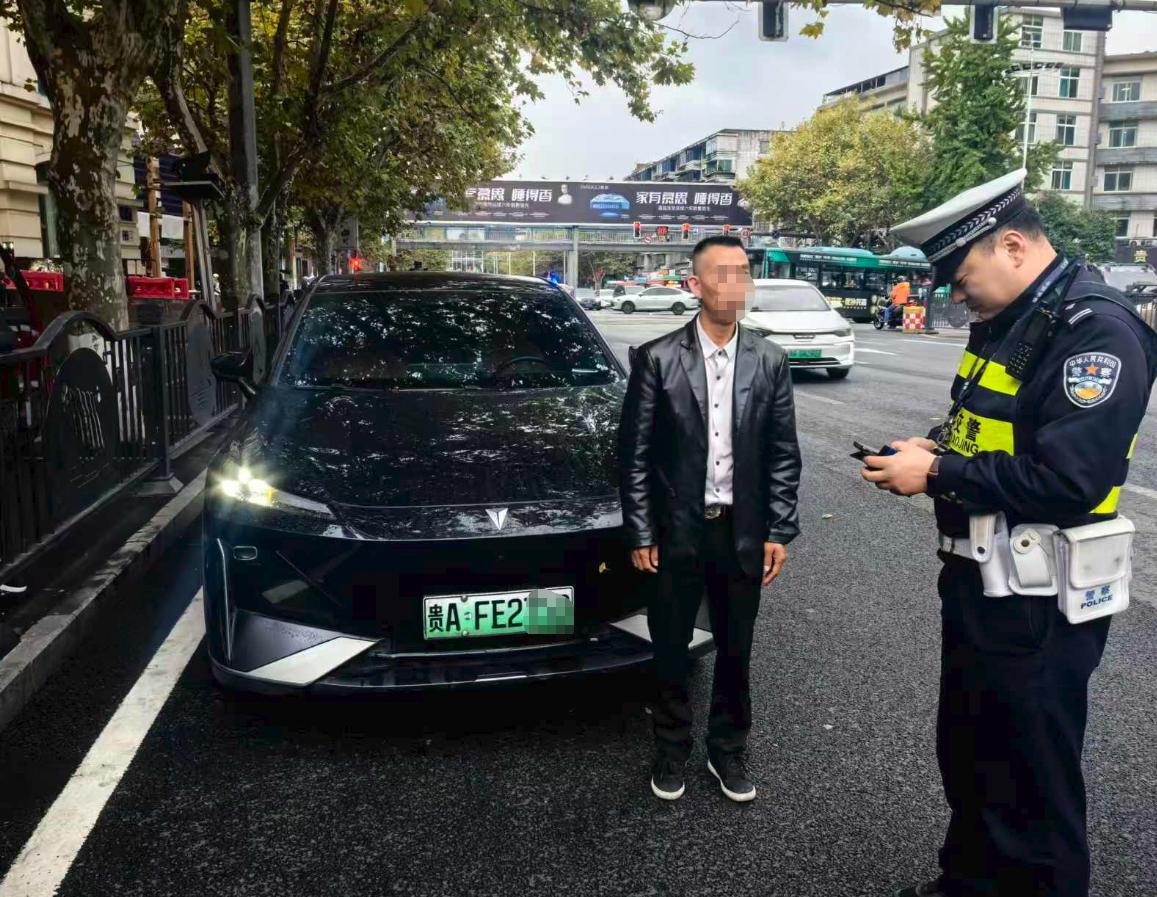 10月31日下午,南明交警指挥中心发现一台车牌号为贵A9***3的“违法王”嫌疑车辆正在辖区内行驶。15时许,南明交警四中队民警在纪念塔路口成功将嫌疑车辆拦下,消除了严重道路交通安全隐患。