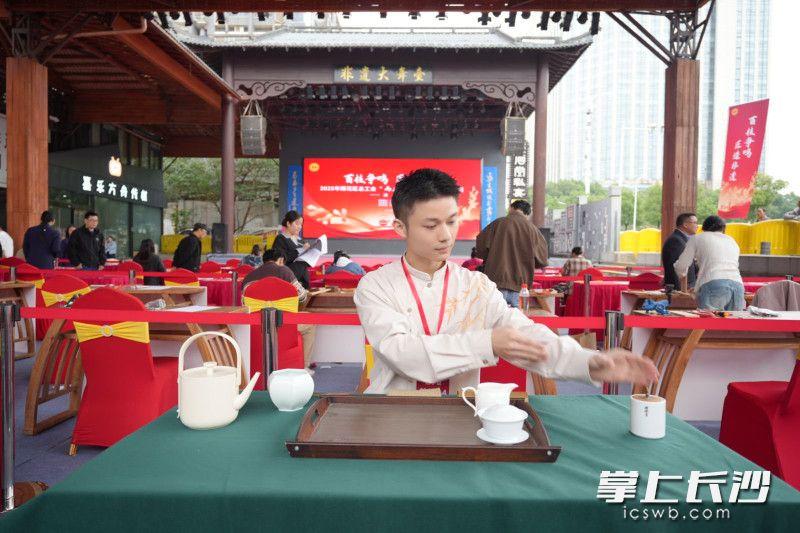 长沙晚报掌上长沙11月1日讯(全媒体记者周游)茶香氤氲间茶艺师动作行云流水,红纸翻飞中剪纸选手勾勒万象纷呈,刨花飞舞处木工匠重塑木魂匠心。10月31日,湖南雨花非遗馆东广场上气氛热烈,2025年雨花区总工会“雨工杯”非遗行业技能竞赛决赛在此拉开帷幕。一场汇聚匠心与传承的技艺盛宴,引得现场近百名观众连连赞叹,沉浸于非遗的深厚魅力之中。