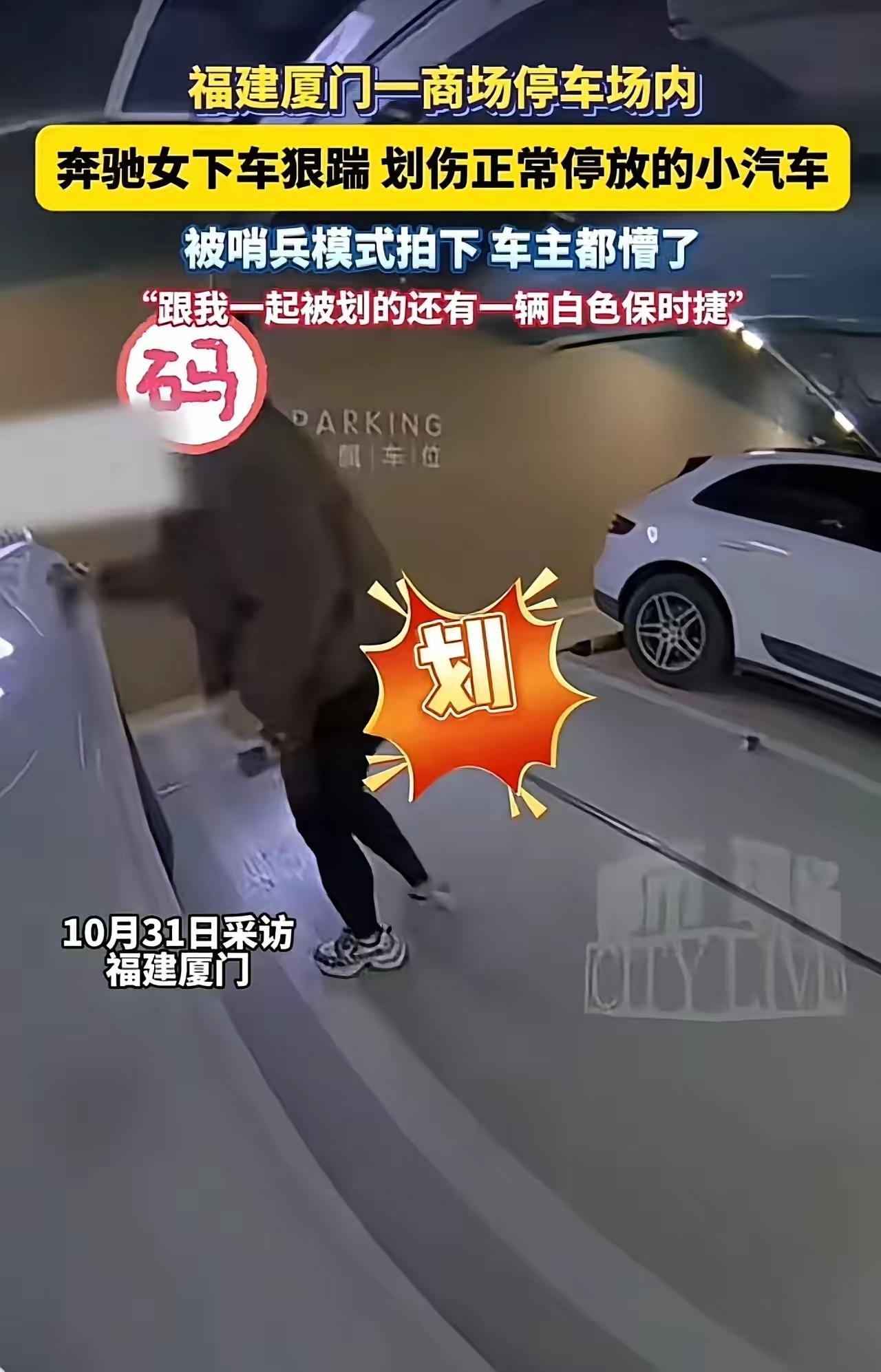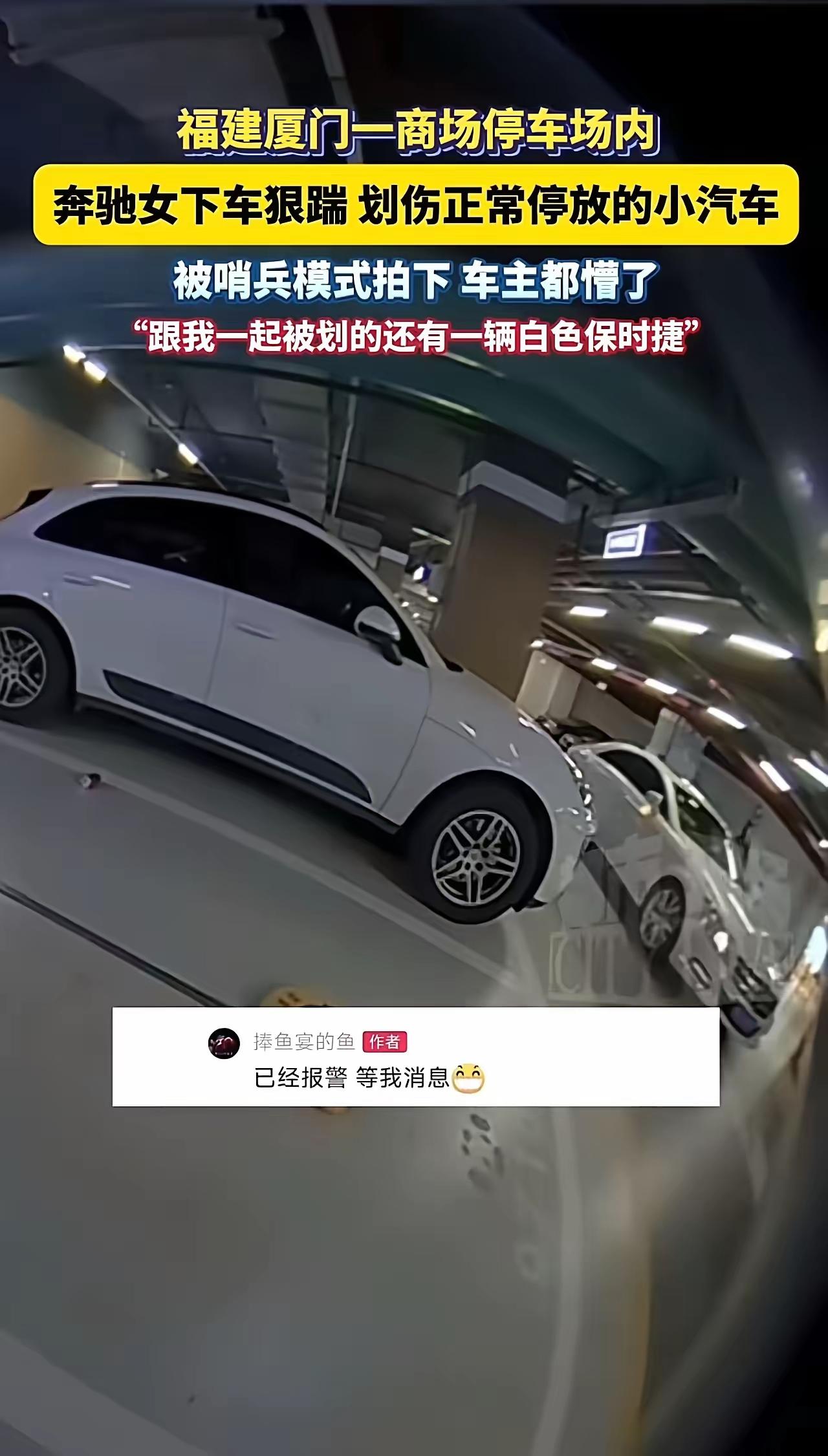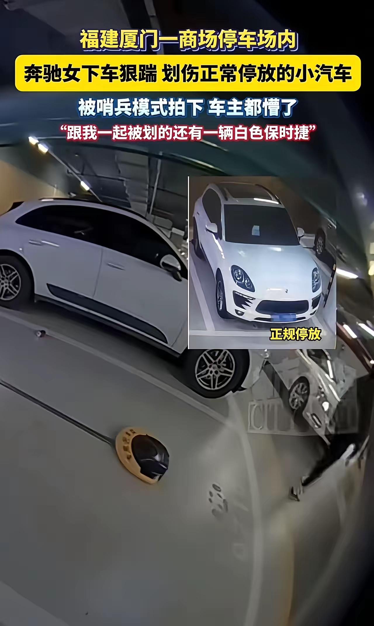 福建这女的操作真让人跌破眼镜! 开奔驰停不进车位, 不怪自己车技烂, 反倒怒踹旁边两辆车泄愤,还划伤了保时捷,殊不知人家开了哨兵模式,全程被拍得明明白白! 自己没本事停好车,就把火气撒在无辜车辆上,这哪是任性,分明是法盲式愚蠢!旁边的车停得规规矩矩在白线内,特意留了距离,没招谁没惹谁,凭啥要为她的无能买单? 根据法律,故意毁坏财物超5000就可能坐牢,这保时捷的钣金和漆面定损大概率过万,要是车主不谅解,她真得为自己的冲动付出代价。 现在有些人就是这样,遇到问题先怪别人,从不想着反思自己,情绪一上头就违法乱纪,最后只能自食恶果。你觉得车主该谅解她吗? 要是你遇到这种故意划车的人,会选择私了还是报警?