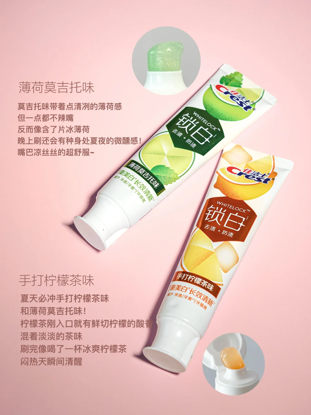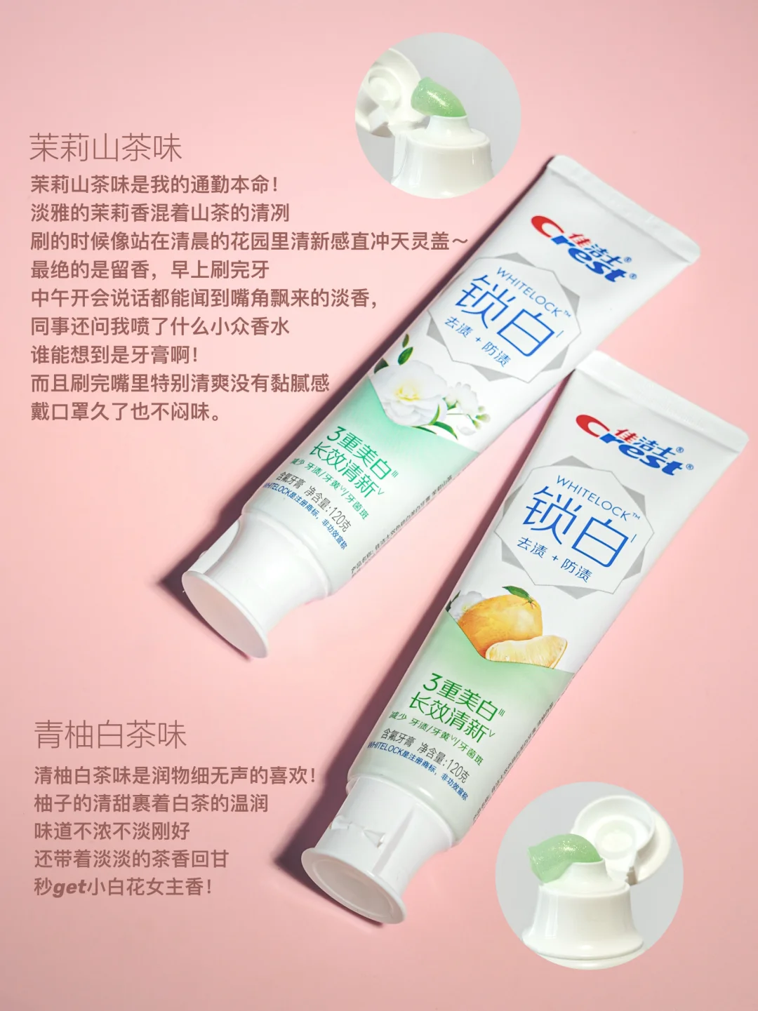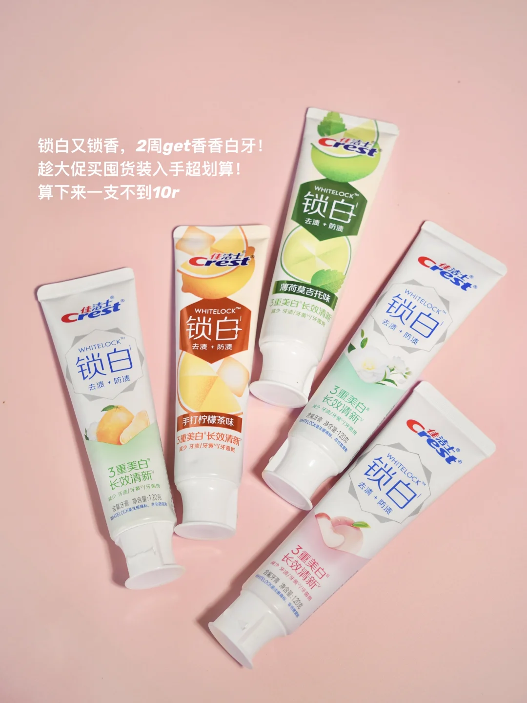看完只想快点拆开一支去刷牙,佳洁士你小汁也太会了吧!!正好手头上有同款!给露家军分享佳洁士锁白牙膏的使用感受~我在李老头直播间一次性入的四支经典口味+两款特调口味~挤出来的双色渐变膏体blingbling像高光,每一支味道都好好闻!选用了瑞士香氛,香味高级又持久~
