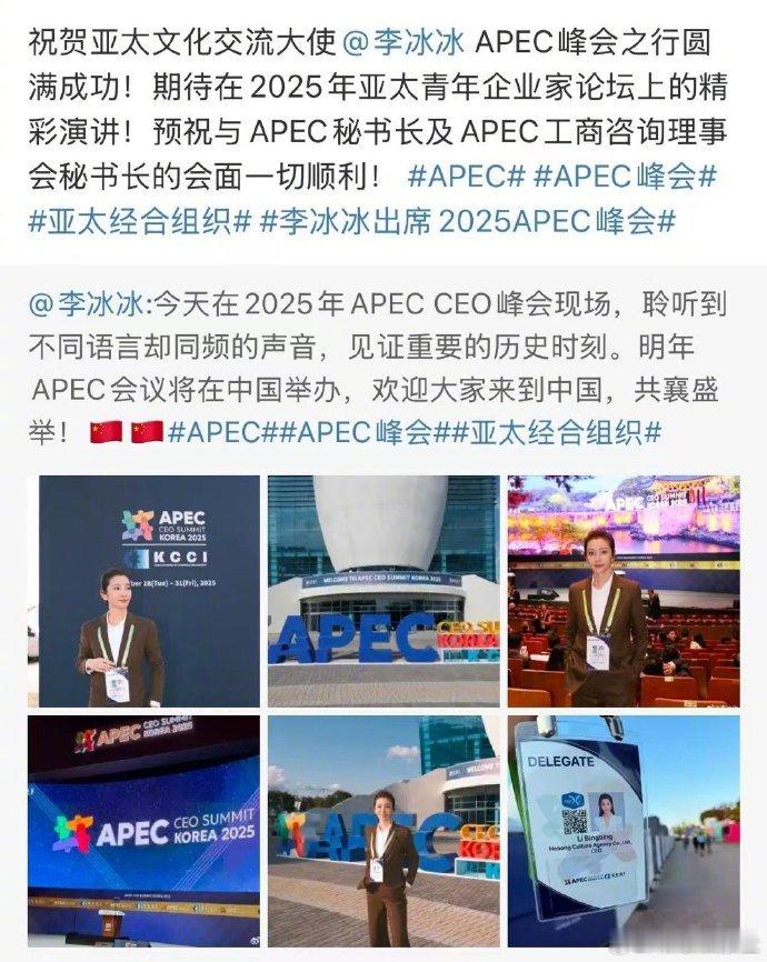 李冰冰大花含金量还在上升 家人们,李冰冰的行程太重磅了!韩国 APEC 峰会从参