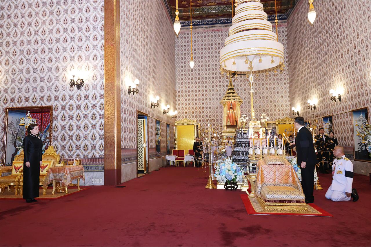 诗妮娜站在角落里,没有资格祭拜诗丽吉太后 诗妮娜虽以儿媳身份奔赴国葬,但在仪式中却难掩尴尬处境。现场没有她的公务镜头,与主持国葬的帝后相比,她只能如晚辈般站在角落,毫无参与感,地位与备受重视的苏提达相比,差距明显,尽显落寞。