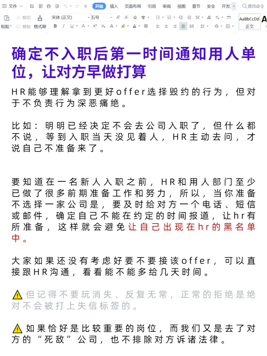 🟢确定不入职后第一时间通知用人单位,让对方早做打算