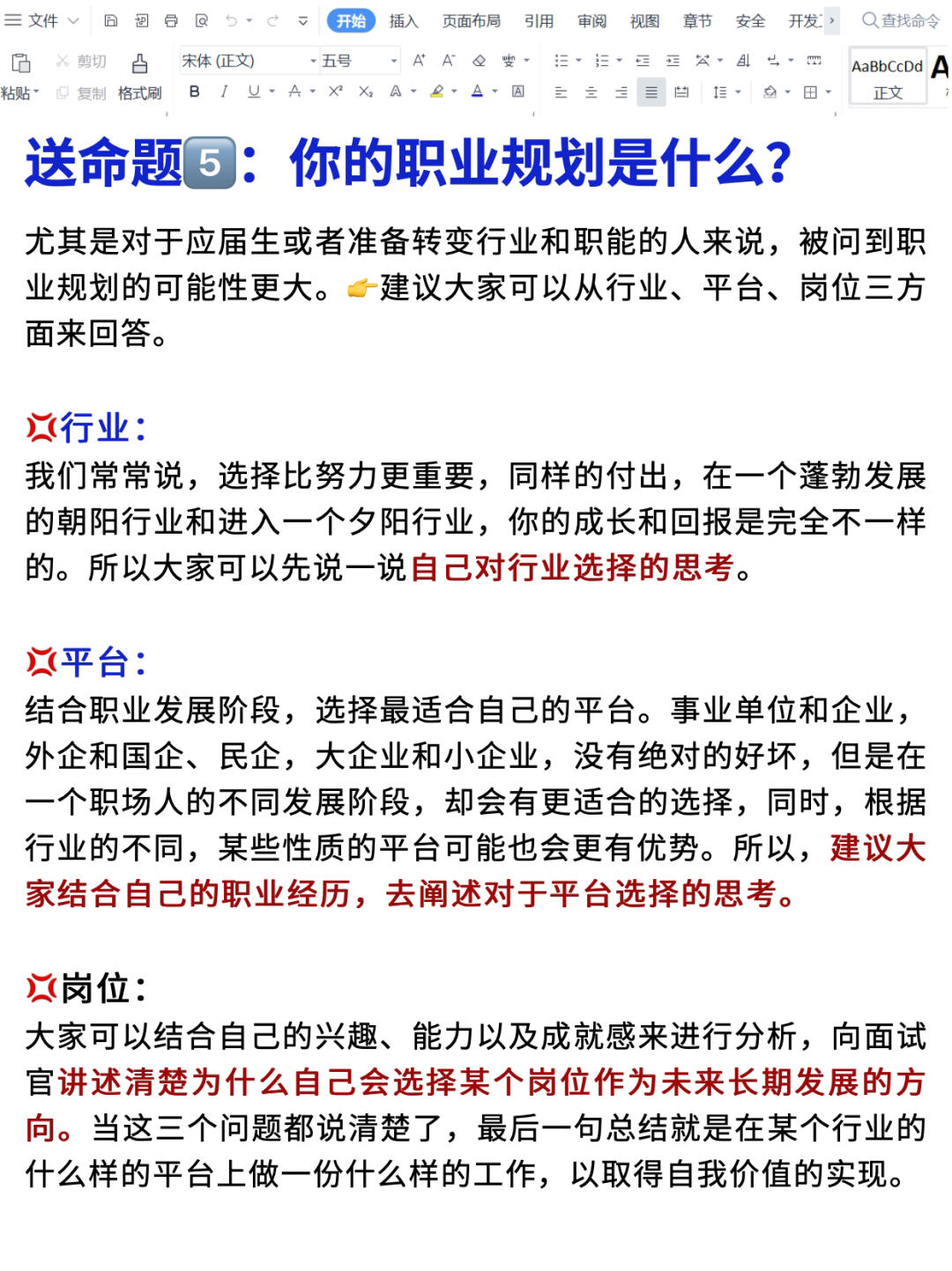 🟪送命题⑤:你的职业规划是什么?