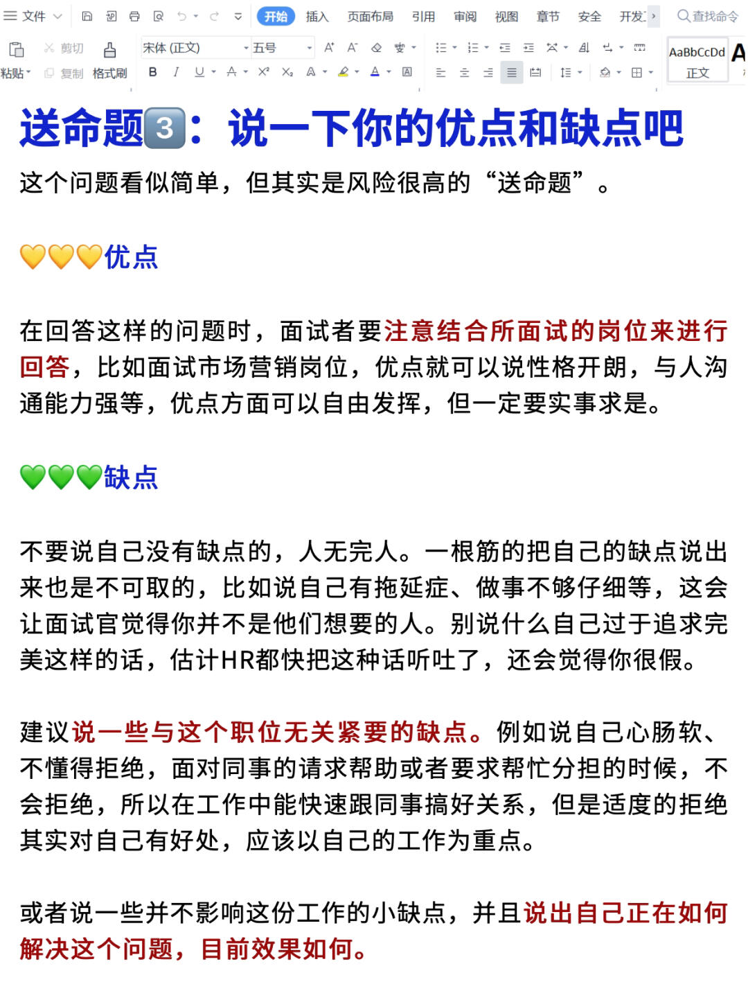 🟫送命题③:说一下你的有点和缺点吧