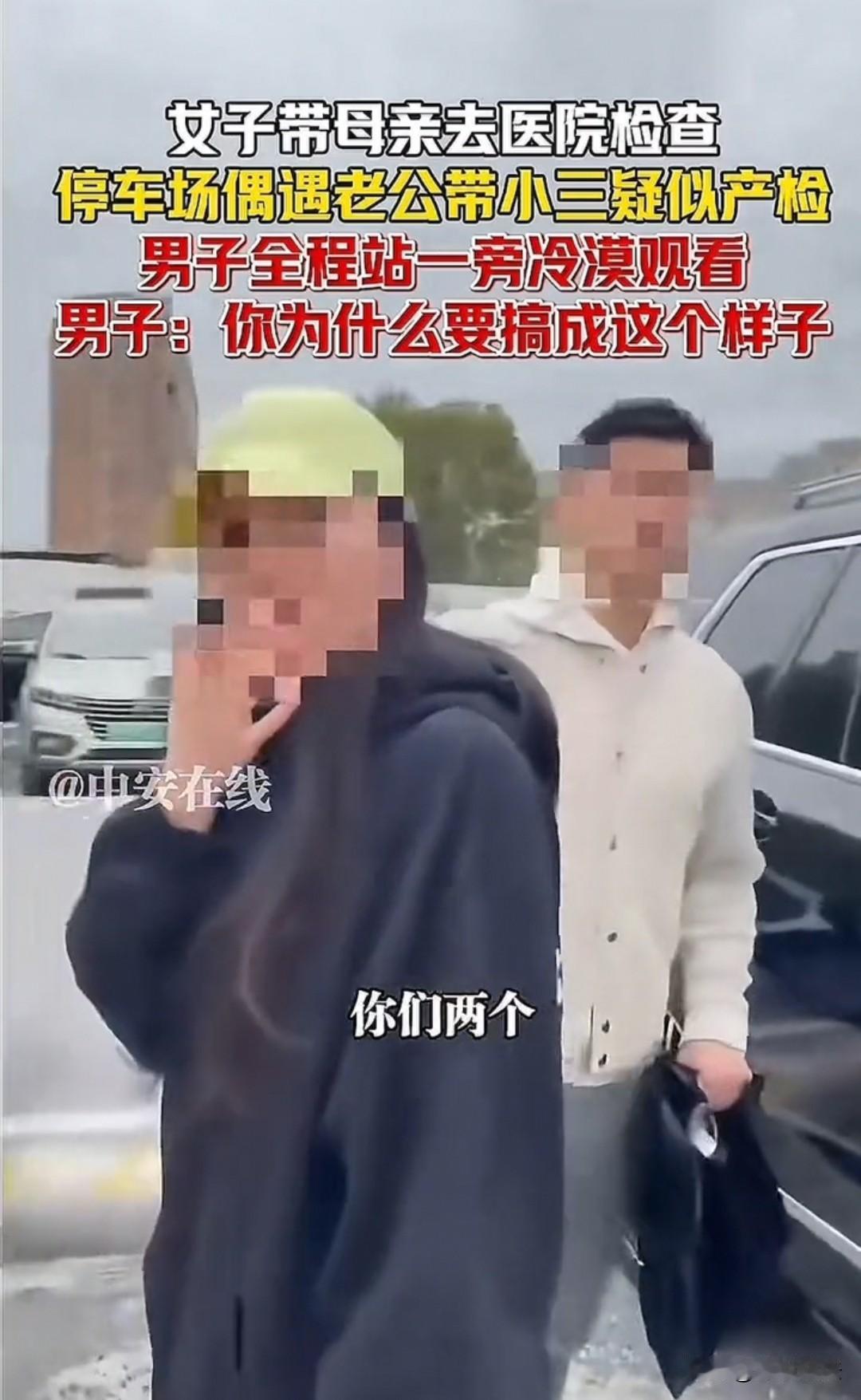 上海,男子带着女子疑似去产检,被妻子撞见。妻子上前询问两人是不是怀上了,男子没有正面回答,女子反而很诧异,问:你是谁呀? 妻子没有回应,只是一味地拿着手机拍摄,并不停询问男子:到底怀上没有?给我一句实话!敢做不敢当吗? 男子想早点结束这尴尬的场景,便直接说道:怀上了,怎么了?她就是比你好。 妻子一大早就接到母亲的电话,说昨晚身体不舒服,想去医院检查。 作为女儿,怎会拒绝母亲的请求?于是妻子放下手上的活,直接去娘家把母亲接到附近的医院看病。 她这边急得焦头烂额,男子却潇洒地带着另一位女子也去了医院,只是男子并不知道丈母娘身体不适也要来就诊。 这下巧了,两人居然碰面了。最开始是妻子看到男子的车子,心想,老公怎么来这里了,是不是不舒服呀? 可还没来得及给对方打电话,就看到男子拿着一位女士的包走在前面,女士跟在后面。这下妻子明白了,原来老公整天说忙,竟是忙着和别人谈恋爱! 可这是1月,他们来医院干嘛?难道是检查妇科?难道是怀孕了? 妻子最忌讳的恐怕就是老公和别人怀上孩子,于是直接拿着手机朝那边走去,一边拍一边冲过去询问,你们来这里干嘛? 男子非常吃惊,但表面依旧镇定,或许想瞒天过海,便淡定地说,你干嘛呢? 可妻子没那么淡定,带着火气对那个女子说,你是谁?你们来干嘛呀? 那位女子也很诧异,反问道,你是谁呀?心想,我们是男女朋友,你又是哪位? 还没等女子打消疑虑,男子便开口说道,你怎么知道的? 他可能已经判定妻子猜到了两人的关系,想先发制人。 妻子苦笑道,我怎么知道?我是带着我母亲来检查,碰巧碰到的!你觉得好笑吗?这就是天意!你们的事情就该这个时候被我戳破,不然你还想瞒我多久?还想直接把孩子生下来吗? 妻子一想到这里,便再次询问,你们来这里干嘛?是怀上了吗? 两人没有作声,显然女子也知道了妻子才是男子的正牌妻子,自己竟成了见不得光的人。 女子看到妻子在拍视频,知道以对方的性格肯定会发出去,自己的人设全毁了,于是有些不耐烦地说,你们可以了吧? 言外之意是觉得这两个女人太不懂事,没把他一个大男人放在眼里,不知道他要面子。 妻子更加恼火,这事情不是你闹出来的吗?怎么成了我们闹成这样?做错事了还一点悔改之心都没有! 不过,男子的话打乱了妻子的节奏。她此行的目的本就很明确——问清楚对方是否怀上,这不仅是她最关心的事,是关键实证,更是她想维护自己最后一点尊严的底线。 她又开始询问,到底怀上了没有?给个准话! 两人依然没有作声。这时妻子又对着女子吼道,你挡什么挡?都敢破坏别人家庭了,还有什么不敢见人的? 说完,妻子又斥责男子,你对我不负责任,就算了,难道对孩子、对家庭也不负责任吗?你当初和我结婚的承诺呢?海誓山盟呢? 男子实在听不下去,懒得听她唠叨,更不愿意像个透明人一样站在那里被周围的人数落、拍照。 最后他又来了一句,你到底想干嘛? 妻子发泄完情绪,却总想要一个结果,接着追问,到底怀上了没有?你如果不说,我今天真的不会放你们走! 男子也不想拖延时间,拖延越久越难受,便直接说道,怀上了又怎么样? 这句话彻底刺痛了妻子,她拿着手机对着女子拍摄,说道,我要好好看看你哪里比我好看、哪里比我强,我好好好学习啊,学习你是怎么勾搭别人老公的! 女子没有说话,只是哭哭啼啼的,不知道她在委屈什么,难道她也不知道面前的男子是已婚人士吗? 而男子则在一旁帮腔,直接回怼妻子,她哪里都比你好! 妻子此刻的苦楚只有自己知道,身心俱疲,还被老公一再回怼,只能强忍着悲痛说道,好好好,那我就再学习学习,再好好看看这位女子,再把她拍得更清晰一些,让大家都来学习学习! 网友们感慨道,以前的婚姻都能白头到老,为什么现在的婚姻就不行了?到底是哪里出了问题? 一、男子触碰法律底线,损害家庭核心利益 《民法典》第1043条(夫妻应当互相忠实、互相尊重、互相关爱)、第1091条(重婚或与他人同居导致离婚的,无过错方有权请求损害赔偿)。 男子婚内与他人保持不正当关系并陪同产检,已违反《民法典》中夫妻忠实的核心法定义务,既伤害妻子情感、破坏家庭信任,还构成法定离婚过错。 妻子起诉离婚时,可据此主张精神损害赔偿(如心理创伤)和物质损害赔偿(如男子给第三者的夫妻共同财产),财产分割时法院也会倾向妻子,让男子少分财产。 二、妻子维权取证行为合理,但需把握边界 《民法典》第1032条(自然人享有隐私权,任何组织或个人不得侵害)。 妻子在停车场(公共场所)拍摄取证,目的是留存过错证据、维护婚姻权益且未恶意传播隐私,行为合理,不构成侵权。 但若拍摄涉及第三者病历、身体隐私,或擅自公开视频,可能侵犯其隐私权、肖像权,需承担法律责任。 对于此事,大家如何看待?素材:法制进行时11月1日报道。