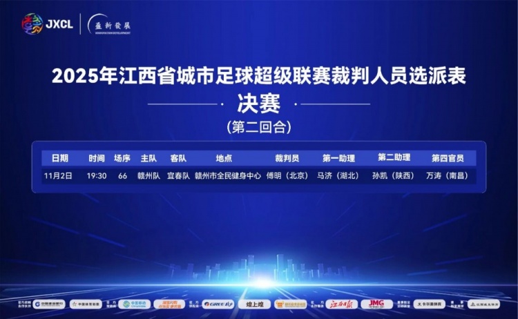 直播吧11月2日讯2025年江西省城市足球超级联赛(简称“赣超”)决赛次回合,宜春队vs赣州队的比赛将于今晚19:30在赣州市全民体育中心打响,首回合赣州队客场2-0取胜,取得先机。