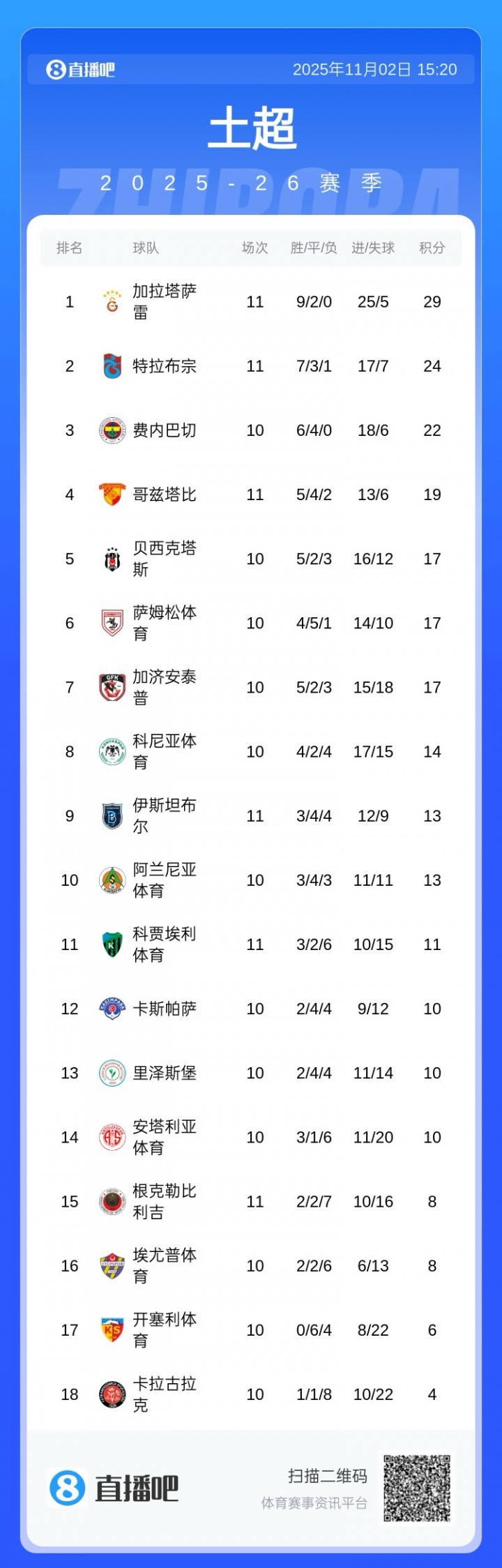 直播吧11月02日讯土超第11轮一场比赛,加拉塔萨雷0-0特拉布宗。