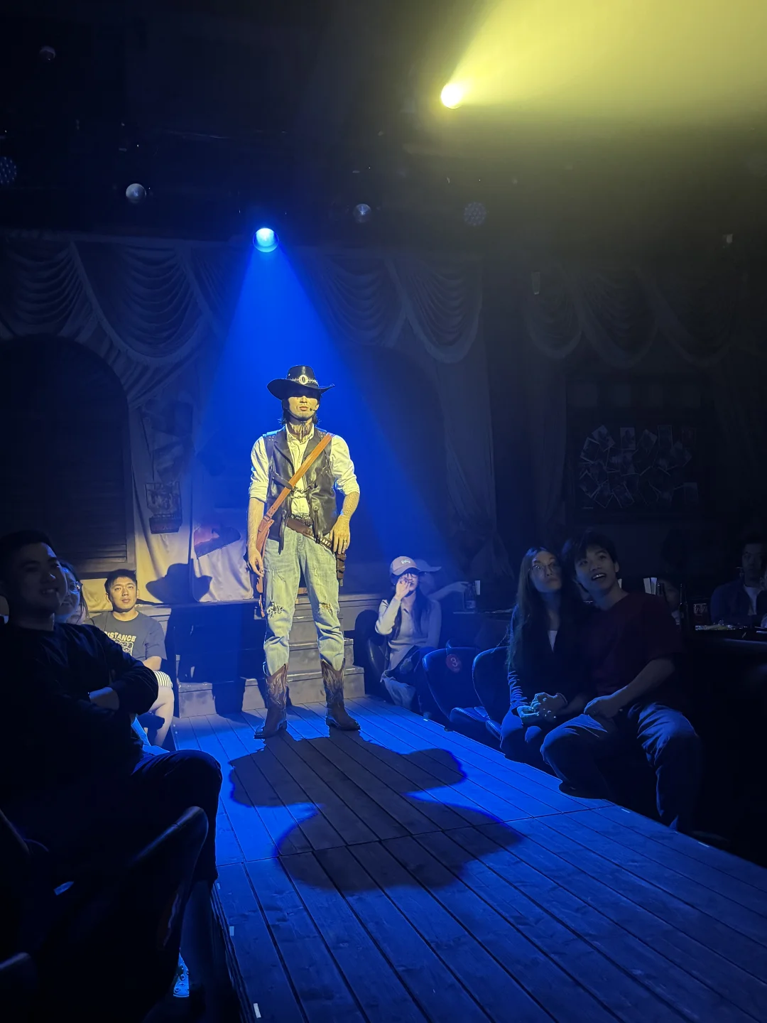 1️⃣四面环绕式舞台:四个面加上中间的走廊,都是表演区域,根据表演需求切换场景,黑暗交替,太多看点了!!演员会在意想不到的地方出现