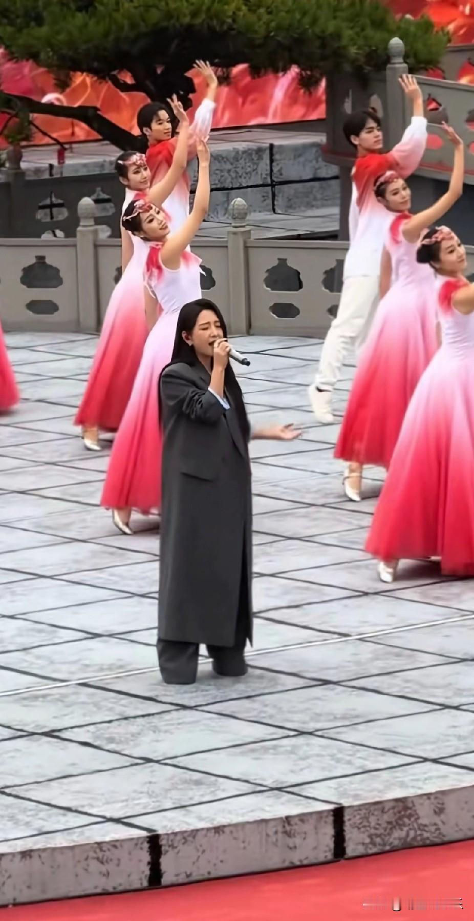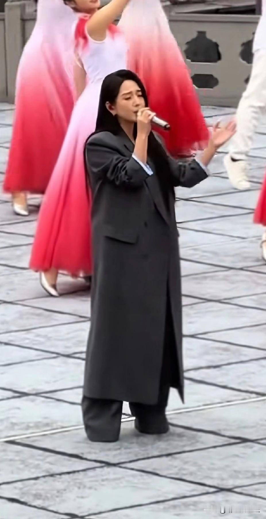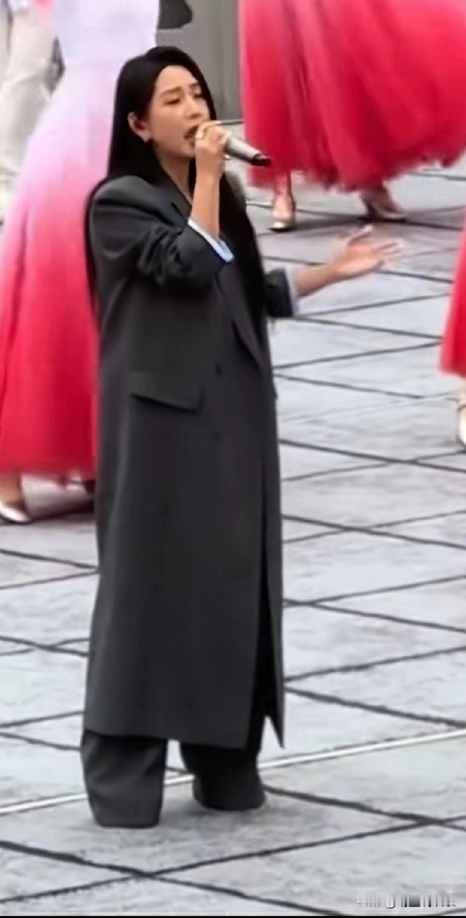 她好像总喜欢穿这样长长丑丑的裤子, 很好奇,这裤子就非这么穿不可吗? 稍微改短点不行吗? 虽然拖地裤显高,但别人都是配休闲鞋看得到脚后跟,她配双恨天高,以为长长的裤子一遮就看不到跟有多高了, 殊不知超高防水台,踩高跷似的恨天高还是若隐若现, 而且只看得到裤腿看不到脚的造型真的好看吗?