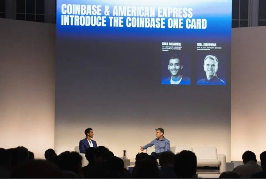2025年6月,Shan与美国运通高级副总裁WillStredwick一同登上Coinbase加密货币峰会的舞台,谈及全新的CoinbaseOne信用卡(该卡为美国运通卡)