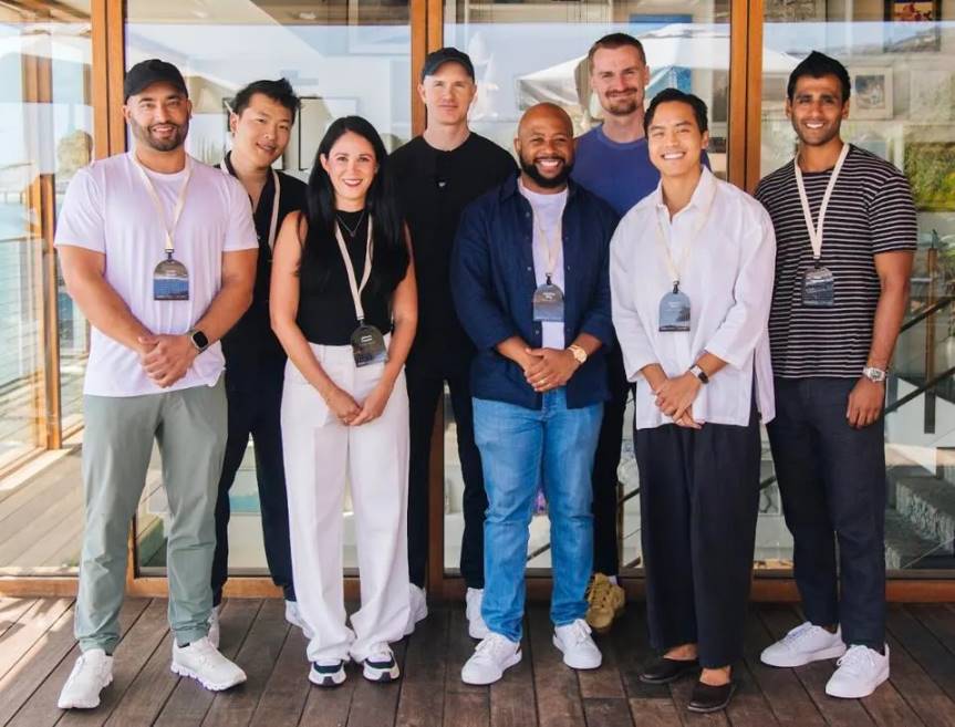2024年9月,在年度CoinbaseVentures峰会上,ShanAggarwal与BrianArmstrong、JessePollak以及CoinbaseVentures团队成员合影。