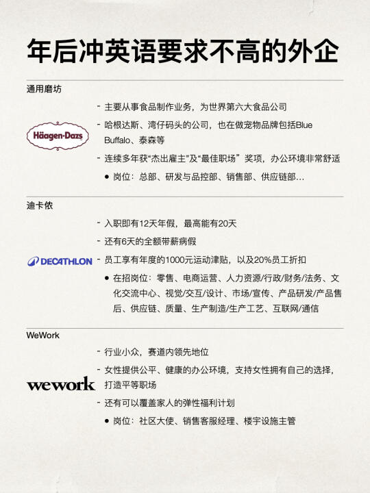 👉🏻其实英语在外企并不是必须项、是加分项,英语要求高不高一般是根据所做的业务、面向的客户、你的Leader...等综合决定的