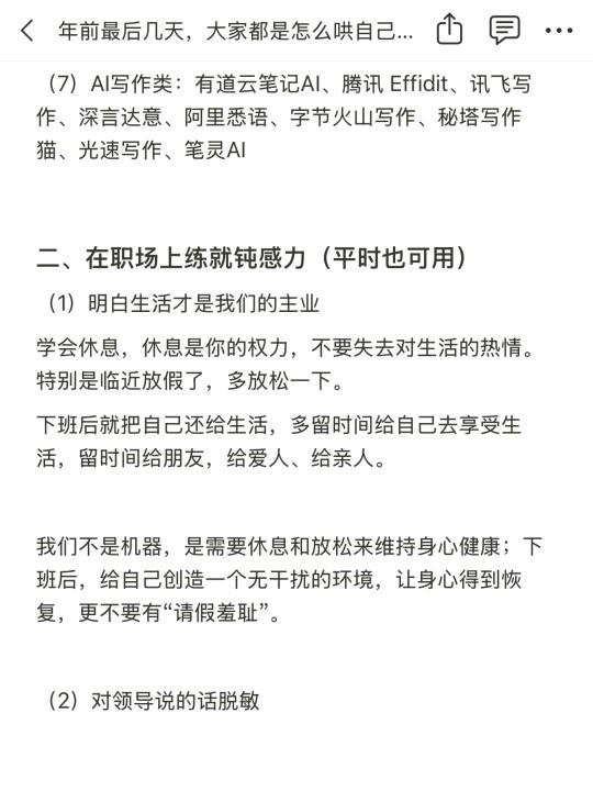 一、AI用起来:分享了38个好用的AI办公工具 二、关于在职场上练就钝感力(平时也可用) . 希望大家都能飞速且迅速地度过年前最后几个工作日! . 不仅是个职场博主,分享真实有效的信息;还会不断分享成长干货,帮助大家提升自我! .
