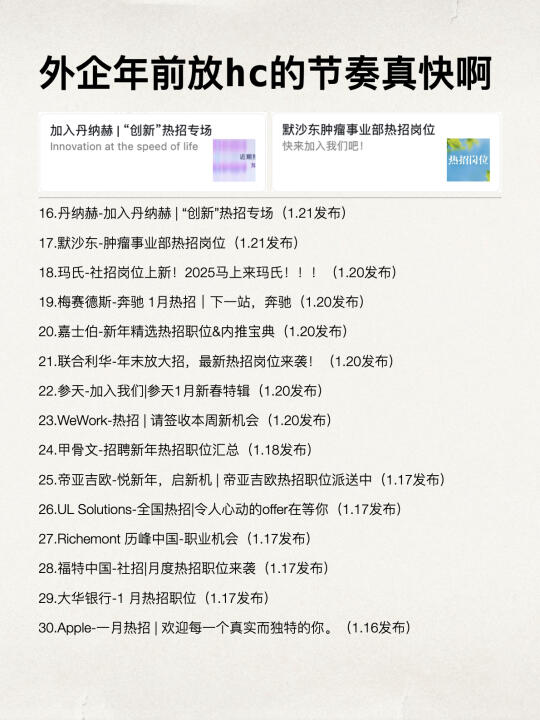 打算年后找工作的快去冲一波外企,年前年后放hc的速度都很快,特别这几天就开了一大堆。很多外企现在放岗就是为了都等着收简历