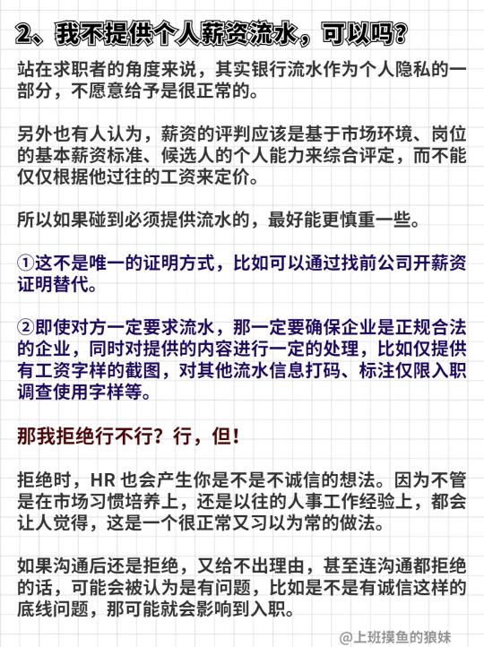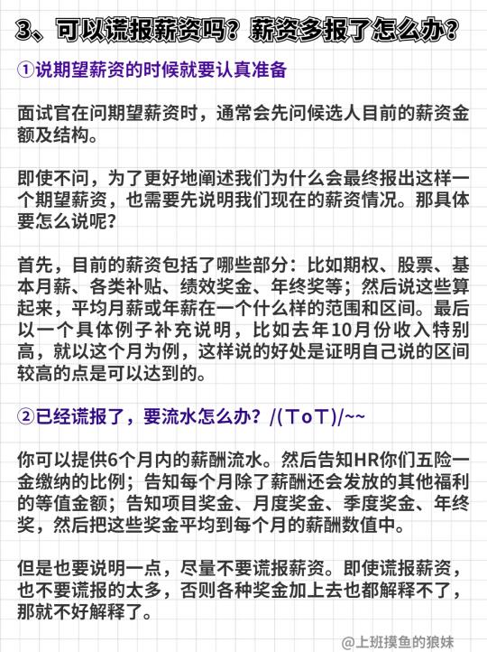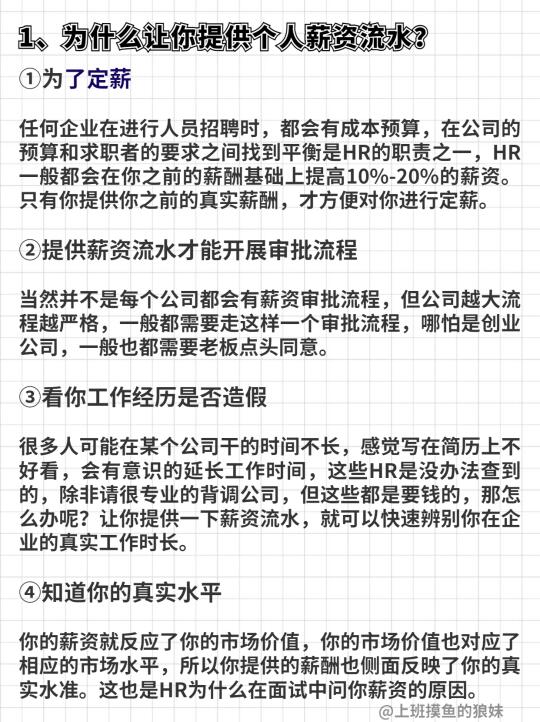 经常有小伙伴问我:“狼妹,HR问我要薪资流水,可是我报薪资的时候多报了,当时是想多要点薪资,但现在薪资流水对不上咋办?” 😭