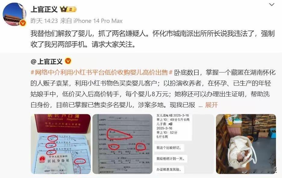 群众举报贩婴被警方扣留3小时, 要求“配合调查”, 看网友们怎么想的…… 11.1日下午,打拐志愿者(网名上官正义)称,替派出所解救了婴儿,抓了两名嫌疑人。被怀化市城南派出所所长扣留,没收两部手机,不认可其行为。被限制3个多小时。 刘德华曾出演过一部寻找失踪儿子电影《失孤》,黄渤出演过一部找被拐儿子电影《亲爱的》,让人深深为他们感动,作为普通老百姓,碰到类似的事情应该及时阻止,应当算是见义勇为吧!