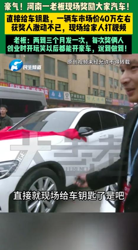 “格局打开了!”河南郑州,男子上班一年,公司突然给他一个大大的惊喜,不是升职也不是加薪,而是老板直接奖励他一辆奔驰,男子表示:自己做梦都没想到,来上班能开了个奔驰。原来,老板也是为了完成当初开创公司时的承诺。 据大参考10月31日报道,这事儿听起来像电视剧里的情节,但它就真实地发生在郑州,这位收到奔驰车的男子,只是众多幸运儿中的一个。 他的老板,并不是什么一时兴起,搞个噱头博眼球,而是为了兑现一个多年前的承诺,公司的合伙人后来对着镜头回忆说,公司刚起步那会儿,特别艰难,大家伙儿挤在个小地方,没日没夜地干活,图啥呢?不就图个未来嘛。 那时候,老板为了鼓舞士气,就半开玩笑地跟大家许了个愿:“弟兄们好好干,将来保证让你们人人都开上奔驰!” 说实话,这种话在职场上太常见了,哪个老板没给员工画过饼呢?“等公司上市了,你们都是元老,人人有股份!” “这个项目拿下来,年底给你们包个大红包!” 听得多了,大家耳朵都快起茧子了,心里也明白,这多半就是一句提神醒脑的口号,没人会真的往心里去。 毕竟,理想很丰满,现实太骨感,很多时候,别说奔驰了,年底能顺利拿到双薪都得谢天谢地,所以,当时那群跟着老板一起打拼的年轻人,听完也就跟着乐呵一下,然后继续埋头干活,谁也没把这句“奔驰梦”当真。 可谁能想到,这位老板,他当真了,他把这句话牢牢记在了心里,当成了一个必须完成的目标。 随着公司业务慢慢步入正轨,效益越来越好,资金也宽裕了,老板开始琢磨着兑现承诺的事了,他没有忘记当初那些陪他一起熬夜、一起吃苦的兄弟们。 于是,一个让所有人都没想到的奖励计划就这么启动了,他们不是一次性把车都买了,而是制定了一个持续性的奖励方案,现在,这家公司基本上每隔两三个月就会举办一次发车仪式,每次奖励两名表现优异的员工。 发的车不是什么二手车或者抵扣券,就是货真价实的奔驰新车,直接送到员工手上,这可不是那种需要员工自己掏钱的“内部购车优惠”,而是公司完完全全、百分之百赠送的奖励。 当许多打工人还在为几百块的餐补、一千块的年终奖斤斤计较时,这家公司直接把奖励的天花板拉到了一个让人难以企及的高度。 这事儿一传开,网上直接就炸了锅,不少网友的评论,那叫一个五味杂陈。 有位网友就留言说:“想起了我以前那个老板,创业时也信誓旦旦地说要让我开上宝马,结果呢?几年下来,他的房子换了又换,车子从一辆变成了三辆,而我的工资,还是那几千块,纹丝不动,最后我实在是看不到希望,只能选择离开。” 这条评论下面,附和的人特别多,很多人都分享了自己被老板“画饼”的经历,那些曾经听起来无比动人的承诺,最后都成了戳心的讽刺。 这么一对比,郑州这位老板的格局和真诚就显得格外珍贵,他不仅仅是奖励了一辆车,他奖励的是一种信任,一种希望。 对于员工来说,他们看到的不是一辆冰冷的汽车,而是自己这几年的辛苦付出被看见、被认可了,这种被重视的感觉,比任何金钱奖励都更能留住人心。 一个员工愿意长期在一家公司待下去,绝不仅仅是为了工资,更是因为他在这里能看到未来,能感觉到自己是这个大家庭里被尊重的一份子。 老板把员工当家人,员工自然会把公司当自己的家来守护,从公司管理的角度看,老板这一手操作,简直是“教科书级别”的。 这不仅仅是激励了获奖的员工,更是给所有在职的员工打了一针强心剂,大家心里都清楚,只要好好干,下一个开上奔驰的可能就是自己,这种看得见、摸得着的激励,比任何空洞的口号都管用。 它能最大限度地激发整个团队的凝聚力和战斗力,而且,这事儿本身就是一个最好的广告,老板真心对员工好,员工就会发自内心地去宣传公司。 朋友聚会、家庭聊天,一句“我们老板给我们发奔驰”,比花几百万打广告的效果还好,人才自然会闻风而来,公司的口碑也就这么建立起来了。 说到底,职场就是一场双向奔赴,老板的格局决定了公司的未来,而员工的忠诚则奠定了公司的基石。 那些只会压榨员工、用空头支票来忽悠人的老板,或许能获得一时的利益,但永远无法建立一个有战斗力的核心团队,路也注定走不长远。 而像郑州这位老板一样,懂得分享、信守承诺,真正把员工当成事业伙伴的人,才能赢得人心,让大家心甘情愿地陪着他一起把事业做大做强。 这样的老板,值得员工的追随,这样的公司,也理应得到市场的尊重,毕竟,能一起走得更远的,从来都是那些懂得相互成就的人。 信源:大参考2025-10-31——10月30日,河南郑州,豪气!河南一老板现场奖励大家汽车!直接给车钥匙,一辆车市场价40万左右,获奖人激动不已,现场给家人打视频,老板:两到三个月发一次,每次奖俩人,创业时开玩笑以后都能开豪车,说到做到!