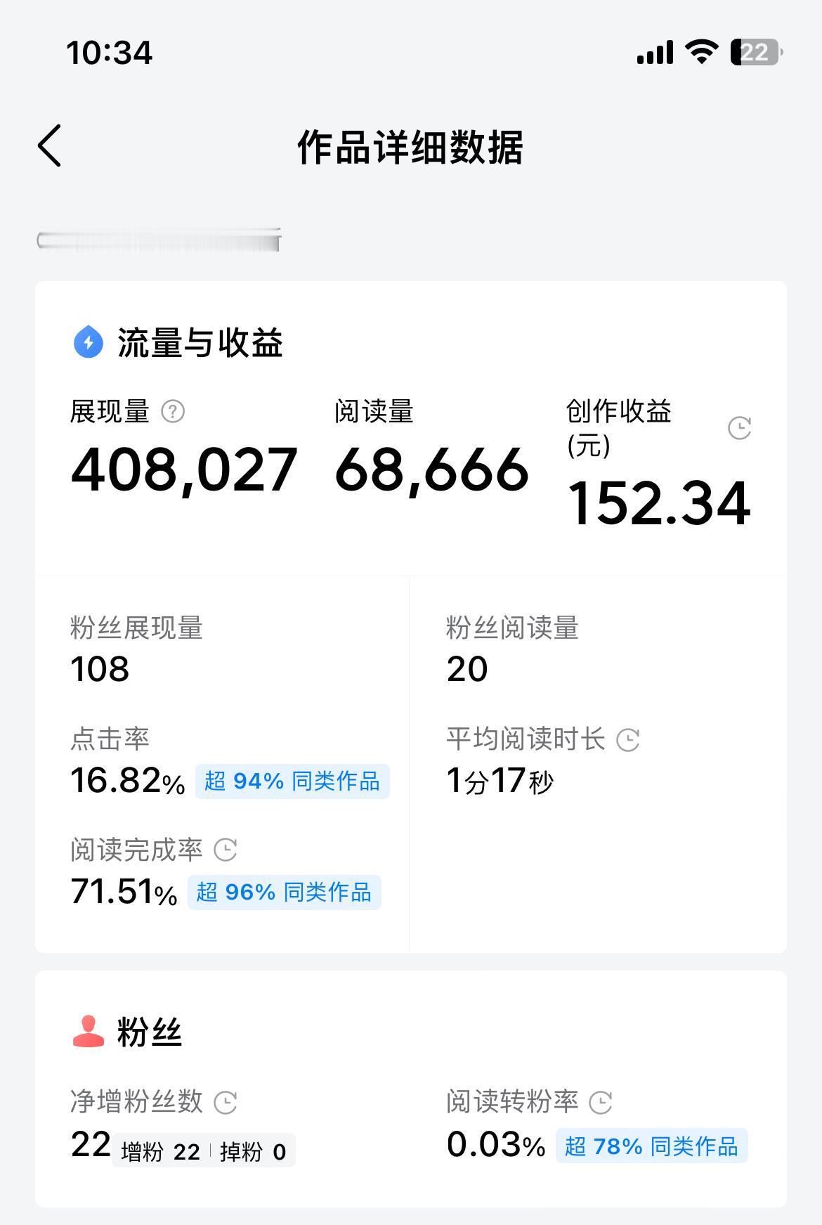 离开头条近一年了,最近闲下来再次拾起,发现流量远不如从前。 有这种感觉可能是之前一篇文章的收益能达800多,最多一篇拿过2000多收益,在这种巨大落差下的感触吧! 不过还是要坚持,有尝试的朋友可以坚持下去,毕竟能拿到结果的都是少数人,而这些少数人就是坚持下去的那一部分!