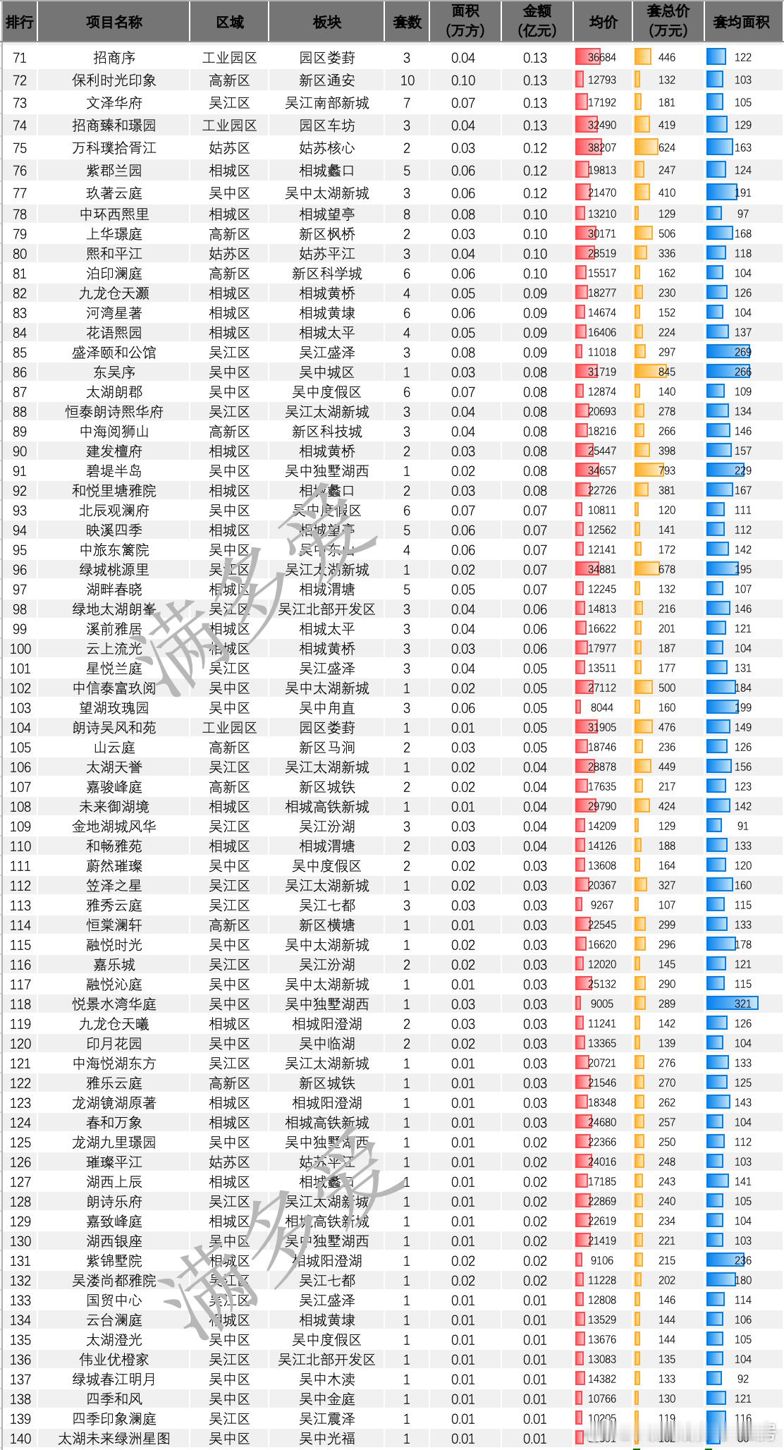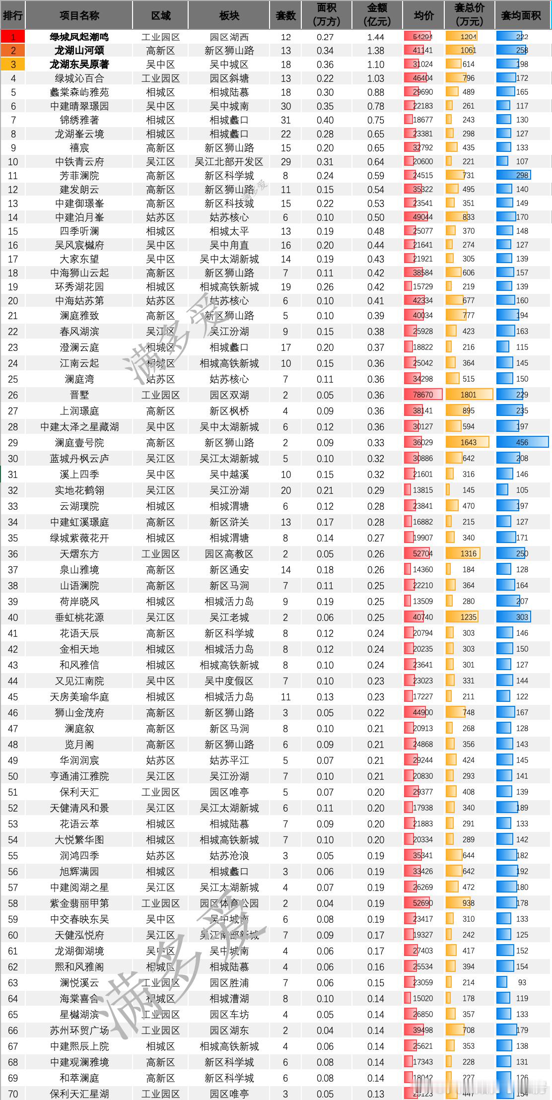 3、从板块看,本周表现亮眼的是相城蠡口(81),其中