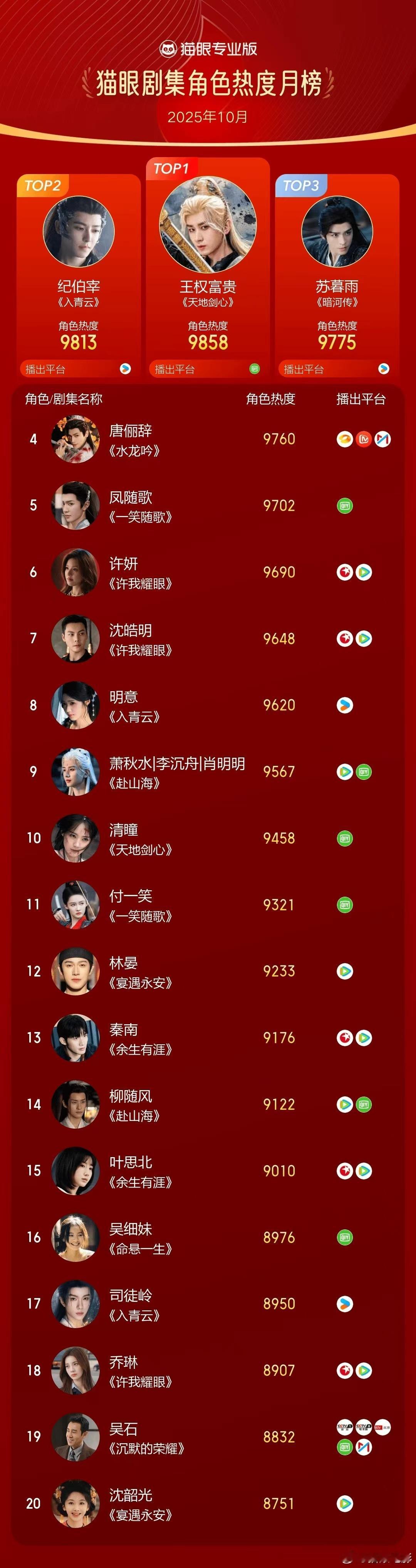 成毅天地剑心王权富贵10月最热角色 恭喜成毅,富贵少爷太棒了,一起来看《天地剑心
