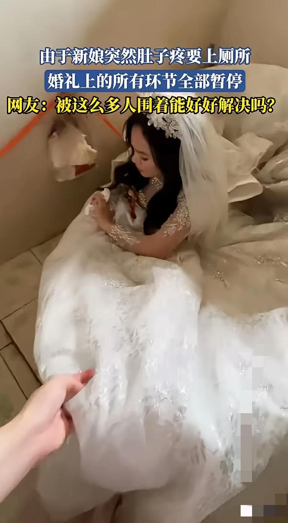 广东新娘婚礼上突然憋不住要上厕所, 全场环节紧急暂停, 三人扶着厚重婚纱陪闯卫生间的名场面,看完真要笑不活又有点心疼!老一辈说结婚当天早上别吃东西,原来都是过来人的血泪经验,这“人有三急”的突袭,真不是体面能扛住的。 但这事真不能全怪新娘尴尬,化妆师的疏漏才是关键吧?换婚纱前主动问一句是否要解决生理需求,明明是基本操作,非要等穿上繁复婚纱才手忙脚乱,这不就是专业度不够嘛!更让人无语的是,这么私密的场面也有人随手拍了发网上,别人的狼狈成了网友的谈资,这分寸感也太缺失了。 其实婚礼本就是记录真实的幸福,偶尔的小插曲反而更难忘,比起完美无瑕的流程,这种接地气的意外反而成了独家记忆点。 不过话说回来,穿着拖地婚纱上厕所已经够难了,大家有没有想过,新娘最后是怎么解决“善后”问题的? 你们参加婚礼时还遇到过哪些让人印象深刻的突发状况?