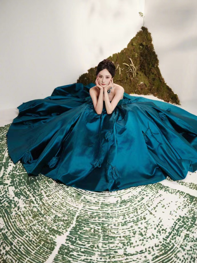 杨幂蓝裙盘发造型,杨幂穿了会生长的裙,是满分生命力的绣绣回来啦,谁能不被这份美貌给惊喜到啊~