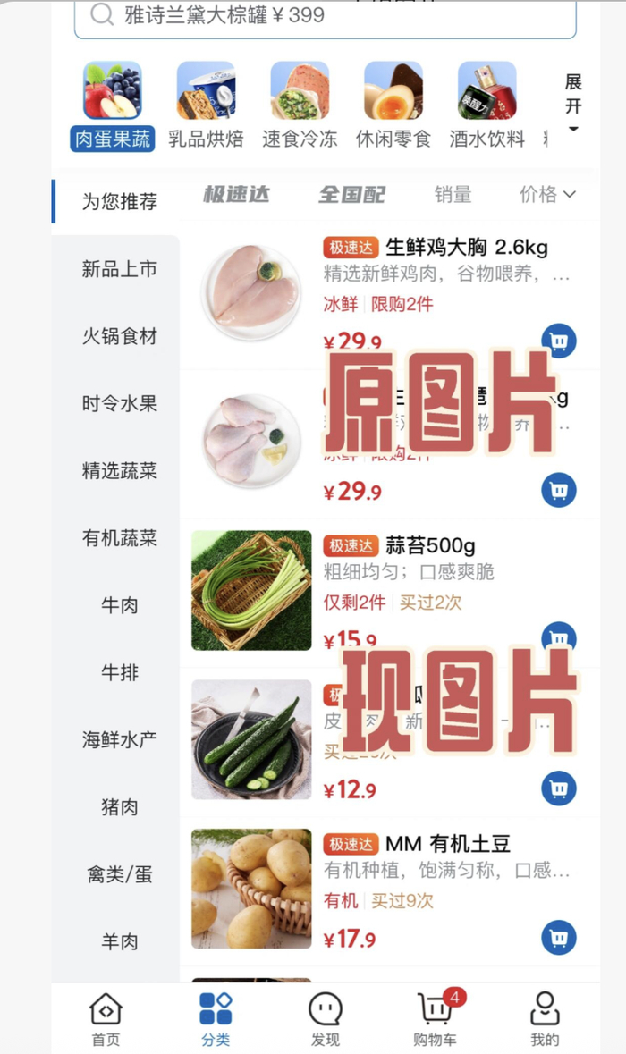付费会员发现,他们失去了曾经引以为傲的“一目了然”的选购效率。原本凭借清晰“证件照”就能迅速判断的肉品纹理、肥瘦比例和包装大小,现在必须逐个点开详情页,在美化过的“成品图”中艰难分辨。有用户提到,尚未改动的猪肉商品区,因“靠图片一眼能刷到自己要买的东西”受到欢迎。