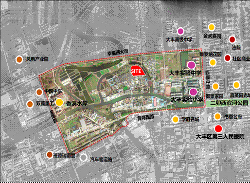 项目隶属大丰区重点发展的西河口片区,是盐城推进“盐丰一体化”战略、打造“产城融合示范区”的核心空间节点,坐拥主城发展红利与完善配套资源。项目东侧为大丰区西河口路,北侧为健康路,周边路网完善,交通便捷,生活配套成熟;此外,项目北侧与东侧紧邻绿化带与天然河道,坐拥一线水系景观资源,生态基底优越,与周边教育、医疗、商业设施共同构筑起全维度的宜居生活圈。