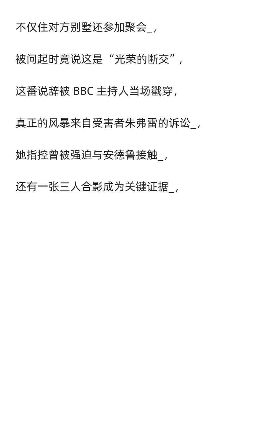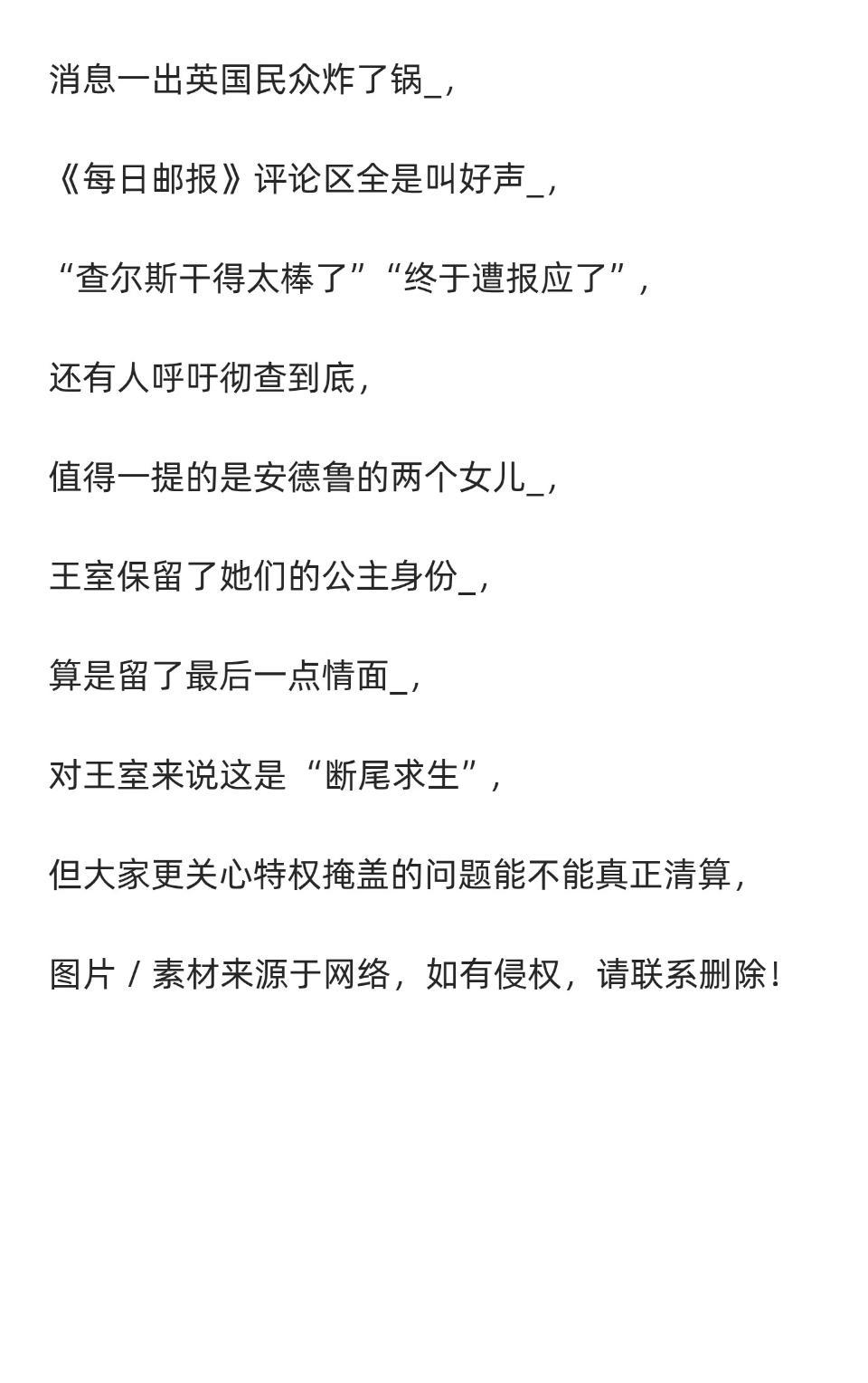 安德鲁被扒了王子皮,连军装都收了。 不是因为偷了王冠,是沾了脏手。 白金汉宫不说话,但动作比谁都快。 不护短,不拖着,直接把他踢出王室群聊。 有人心疼他没了头衔, 可那些被他拖进泥里的人,连句道歉都没等到。 查尔斯上位第一刀,不是砍政敌, 是砍自家烂肉。 王室要活,就得先断臂。 不是为了洗白,是怕连累下一代。 他不是被惩罚的王子, 是王室用来跟过去告别的祭品。 别再问“他怎么这么惨”, 问问那些沉默的、不敢说话的人, 他们才配叫受害者。