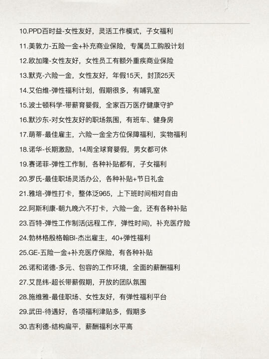 ✔️图上就给大家整理了一些,整体就是,15天及以上的年假,无996,弹性工作制、不打卡,能实现WLB