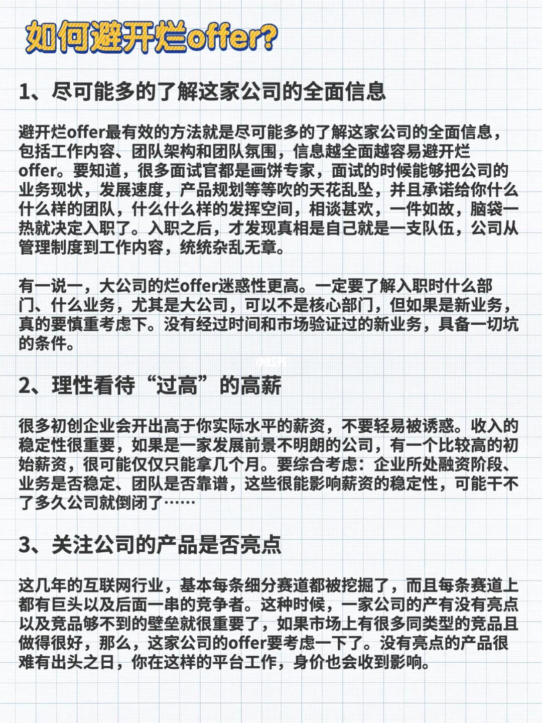 所以,今天就想和大家分享一下避免“烂offer“的有效方法。