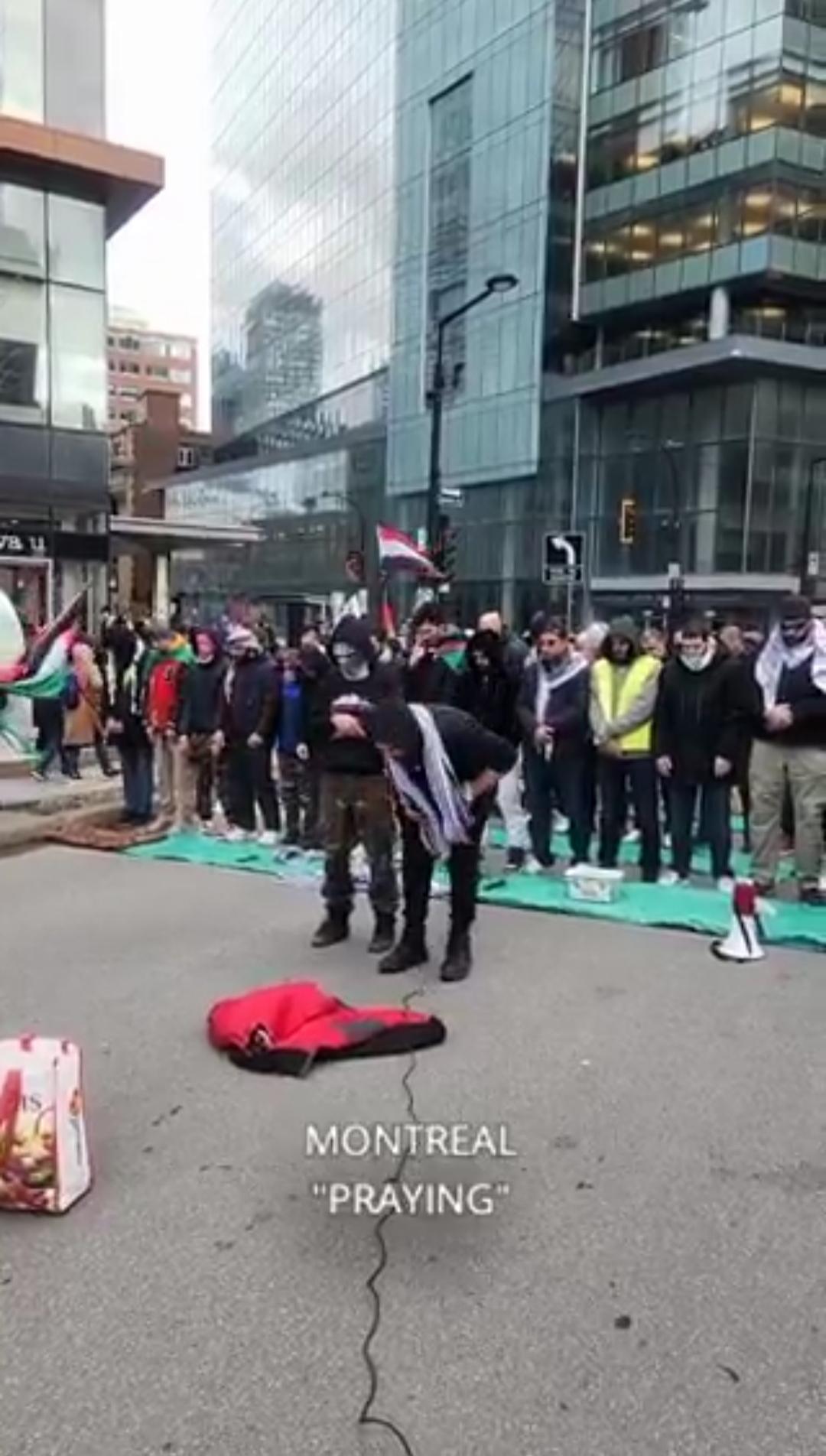 加拿大蒙特利尔警方封锁路口,阻止车辆通行,为穆斯林祈祷站岗。